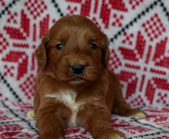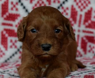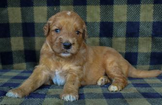 Goldendoodle puppies include cream, apricot, red, chocolate, black, phantom, merle, and parti. Irish Doodle puppies include apricot and red. Colors will vary depending on the parent dogs.