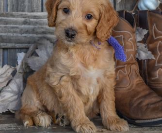 Lindy is a sweet, gentle English Goldendoodle with a super affectionate, loving personality. She comes from generations of health tested, champion lines that include many therapy and service dogs as well as family friendly pets.