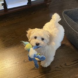 Stella is very loving and gentle dog with everyone. She warms up quickly to most everyone. She is my shadow and would follow me to the end of earth. She likes to sit in my lap and be talked to. Stella has been DNA tested through embark with no health issues found. She is 100%havanese and is AKC Registered.