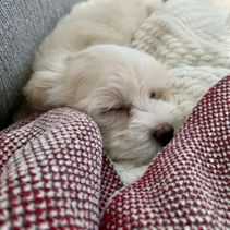 Chloe has a sweet disposition. She does well with other dogs,children, and adults. I call her my Tooties Cuties Havanese mascot,because shes always so friendly with everyone. She loves to to sit in my lap,which is her favorite place to be. She is attentive and learns quickly. She understands the words come, play, and outside potty. Chloe has been tested through Embark and is 100 % Havanese with no known genetic health conditions.