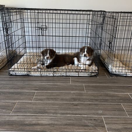 Our puppies include black, red merle, blue merle, and red. Colors will vary depending on the parent dogs.
