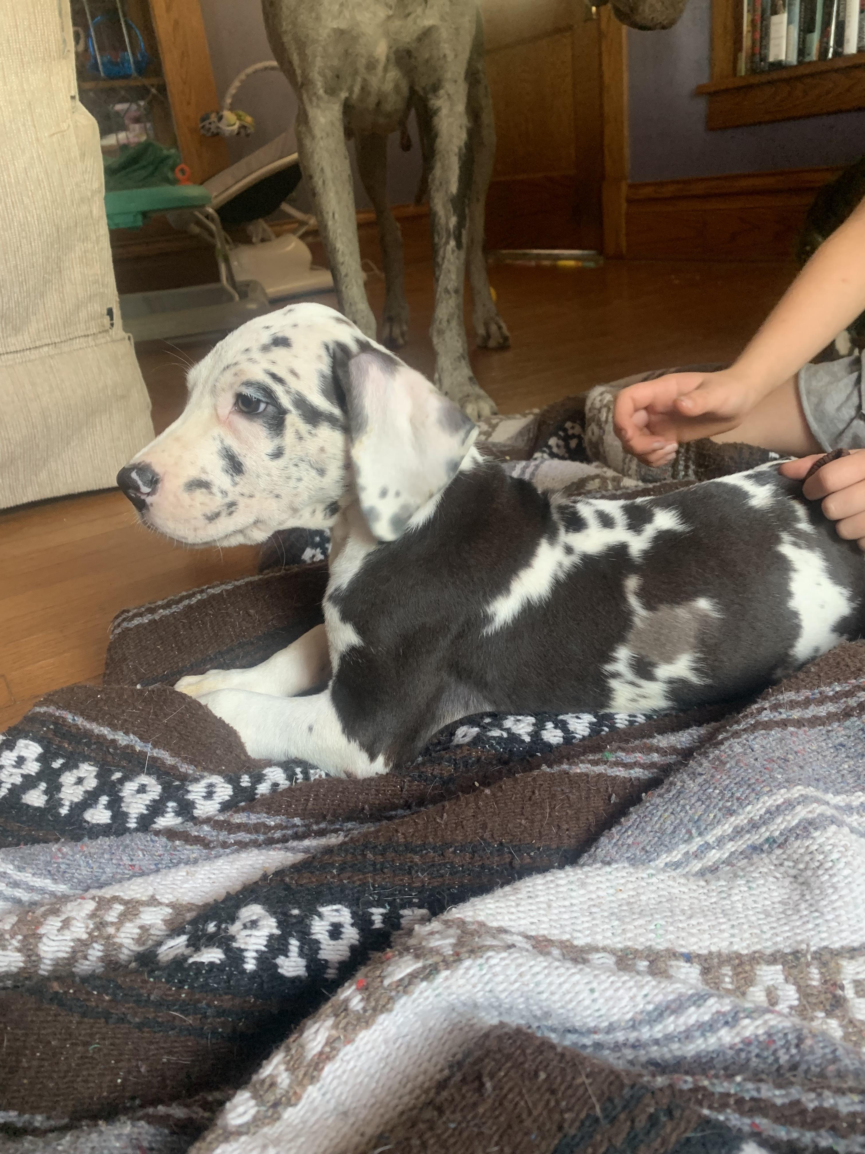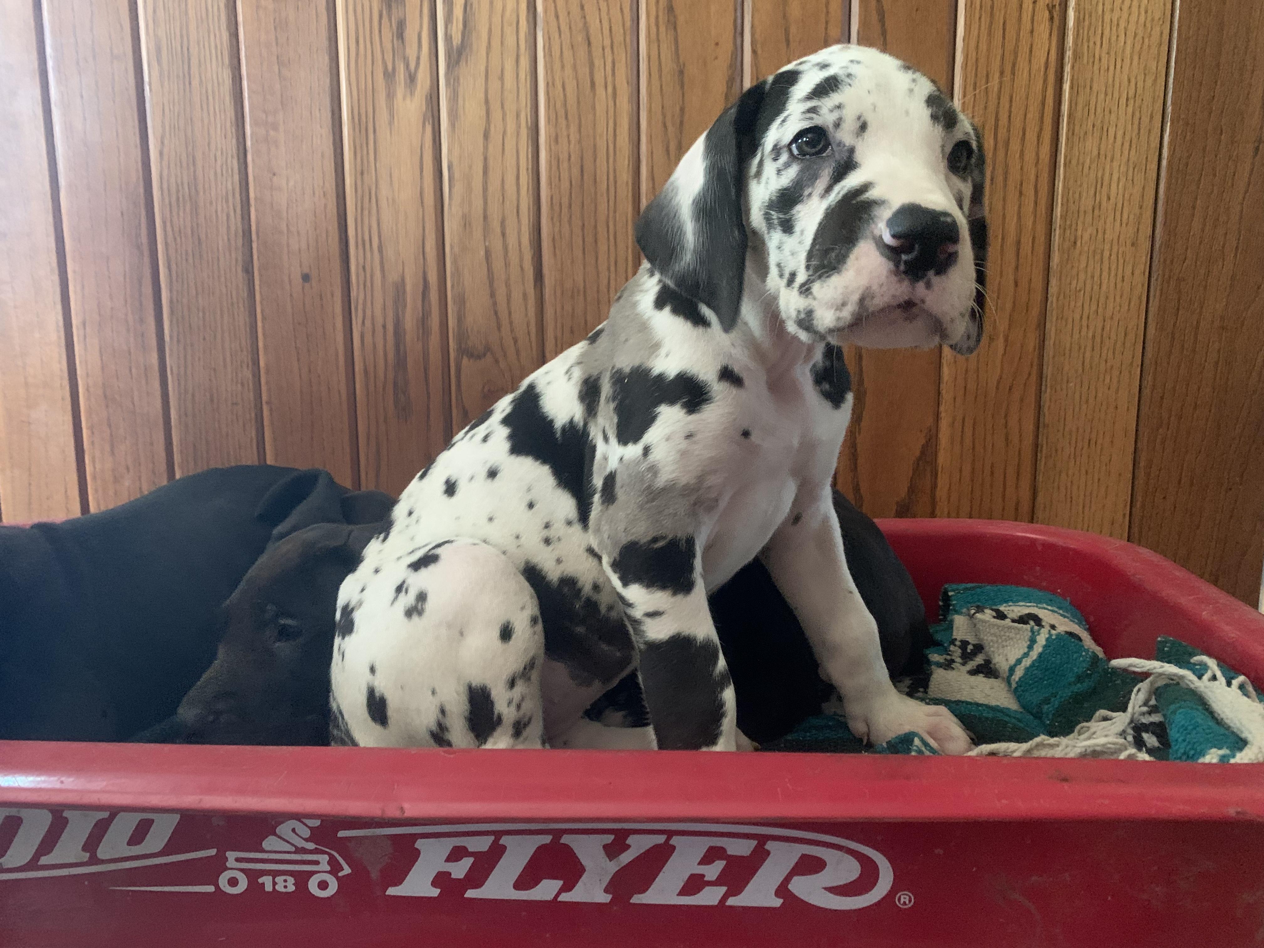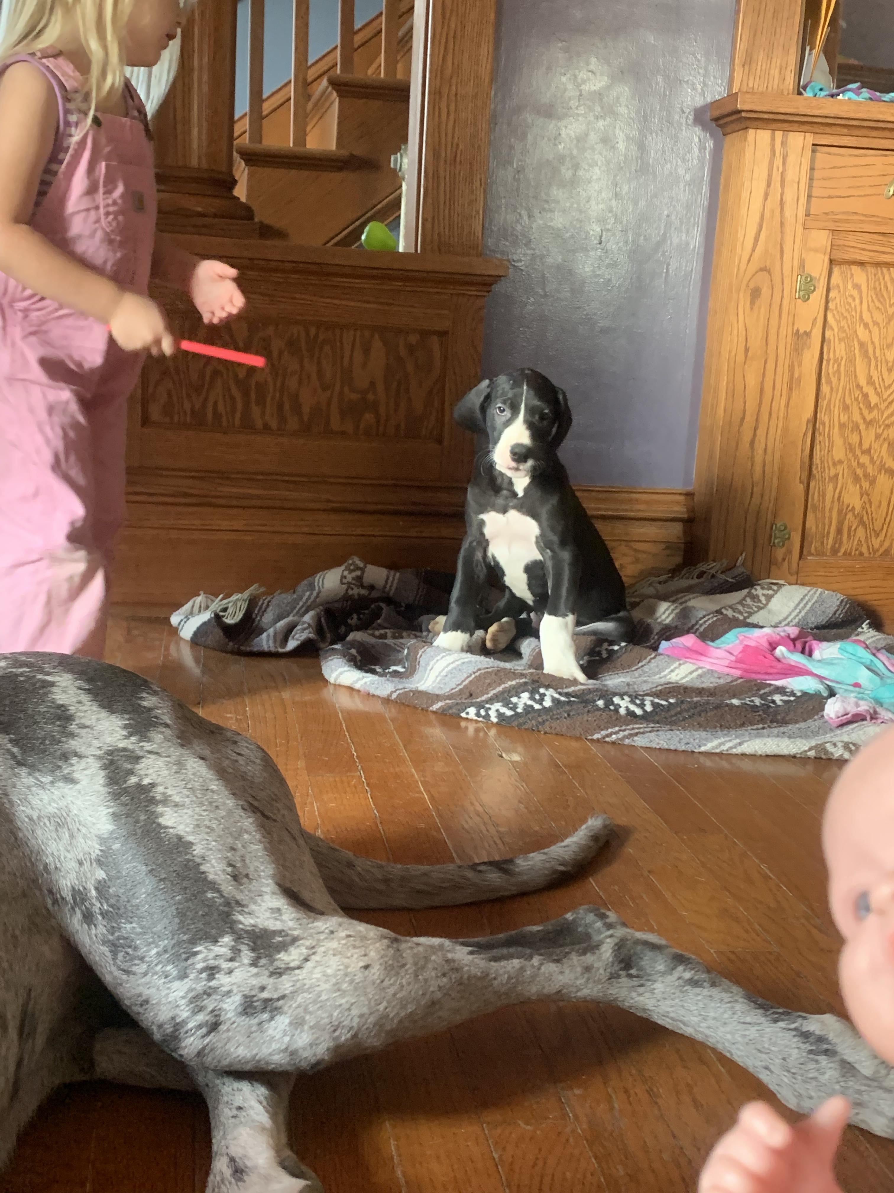 I'm Amber M., the breeder behind Top Notch K & K Farms located in New Effington, SD. I'm a home-based hobby breeder of quality Great Dane puppies! I focus on health and genetics to ensure happy, well-rounded Danes! I have two intact females that have been health tested with Embark, dnaed, color tested and approved by my personal vet. My male has been genetically health tested, dnaed, color tested and ofa tested. They live in my house where pups are hand-raised. I would be honored to connect you with your next beloved companion!