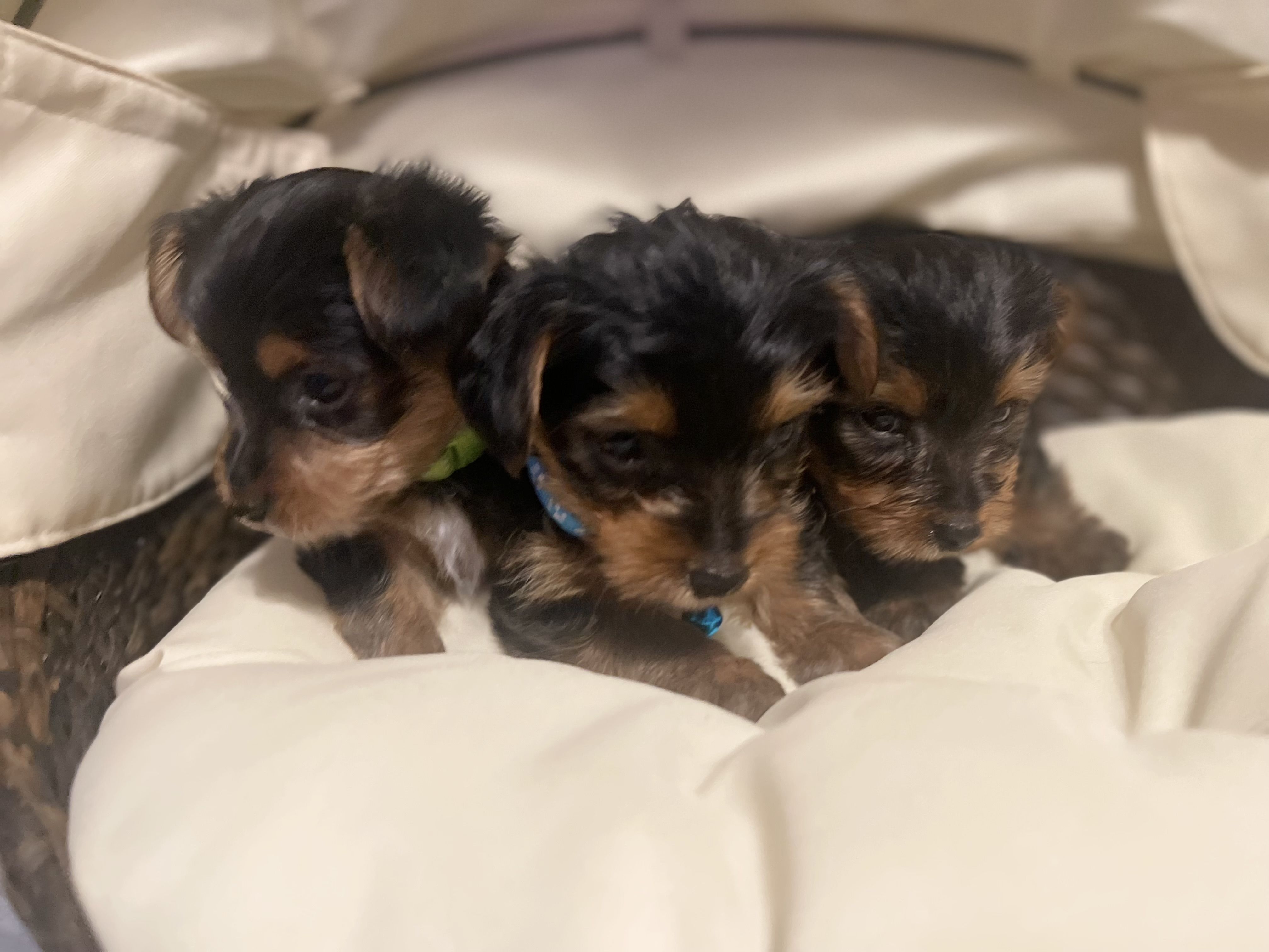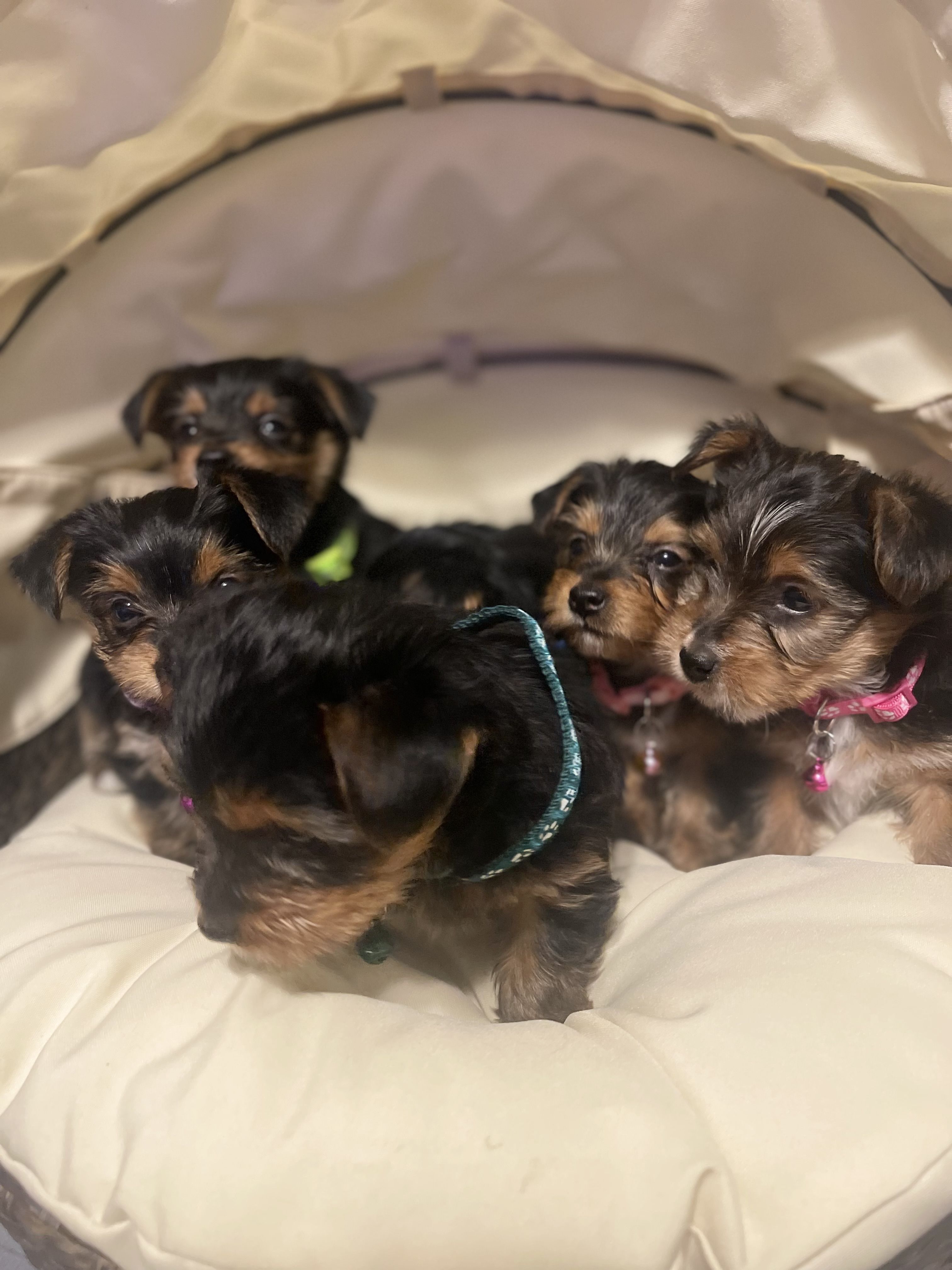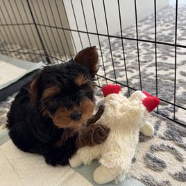 Our Poodle puppies include apricot, cream, and red. Yorkipoo puppies include black and tan and black. Colors will vary depending on the parent dogs.