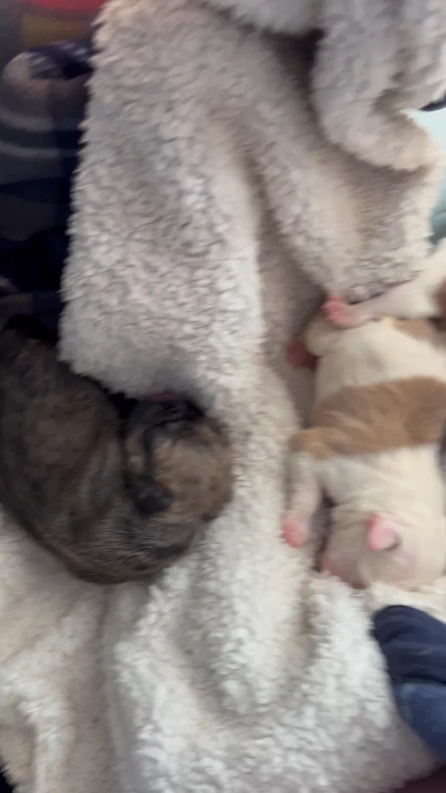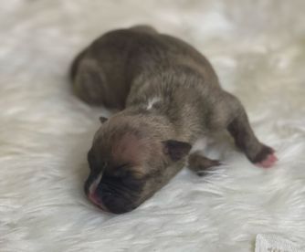 Our puppies are blue brindle. Colors will vary depending on the parent dogs.