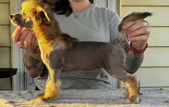 Our puppies include powderpuff and hairless coat varieties. Coat types may vary depending on the parent dogs.