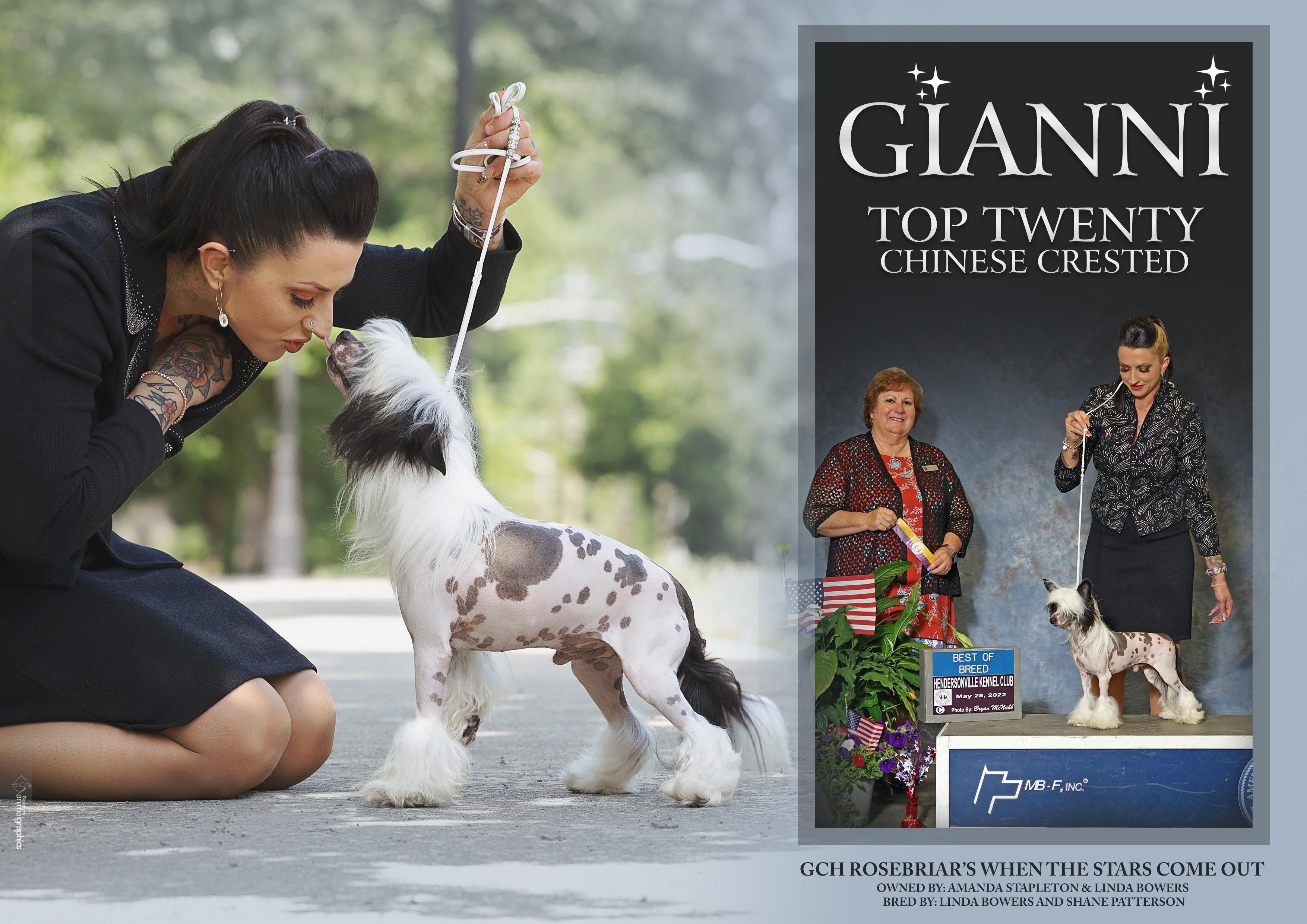 I actually started out with showing. I bought my first crested, Gianni, from his breeder when he was a year old. I had shown a few cresteds for his breeder previously and fell in love with the breed. After a few years of showing them, I decided to start breeding.