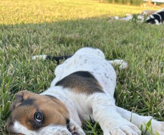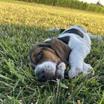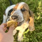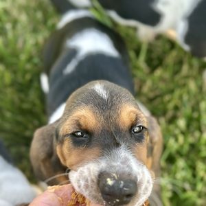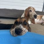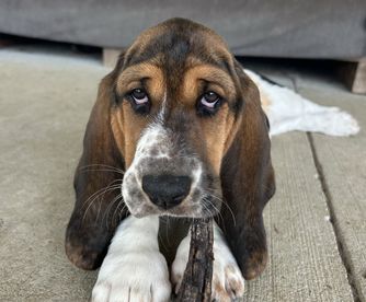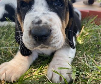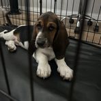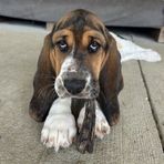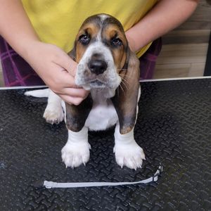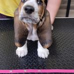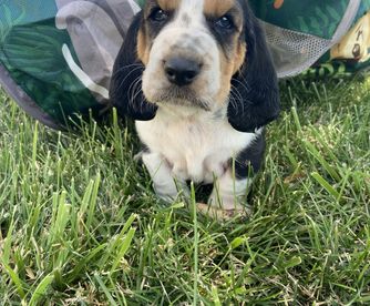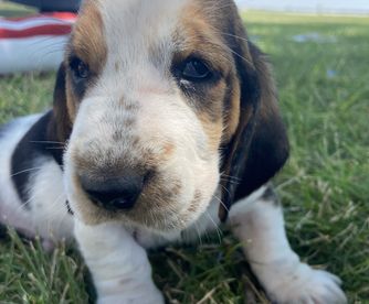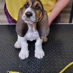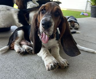Maizey is a very sweet, loving and loyal girl. She has a very upbeat personality and has never met a stranger. Maizey had been very successful in the show ring earning her Grand Champion Bronze title. Maizey has also been an excellent mother to these babies. Maizey has the genetic testing recommended by the Basset Hound Club of America. She is clear for Lafora, Primary Open Angle Glaucoma (POAG), MPS1 and Thrombopathia.