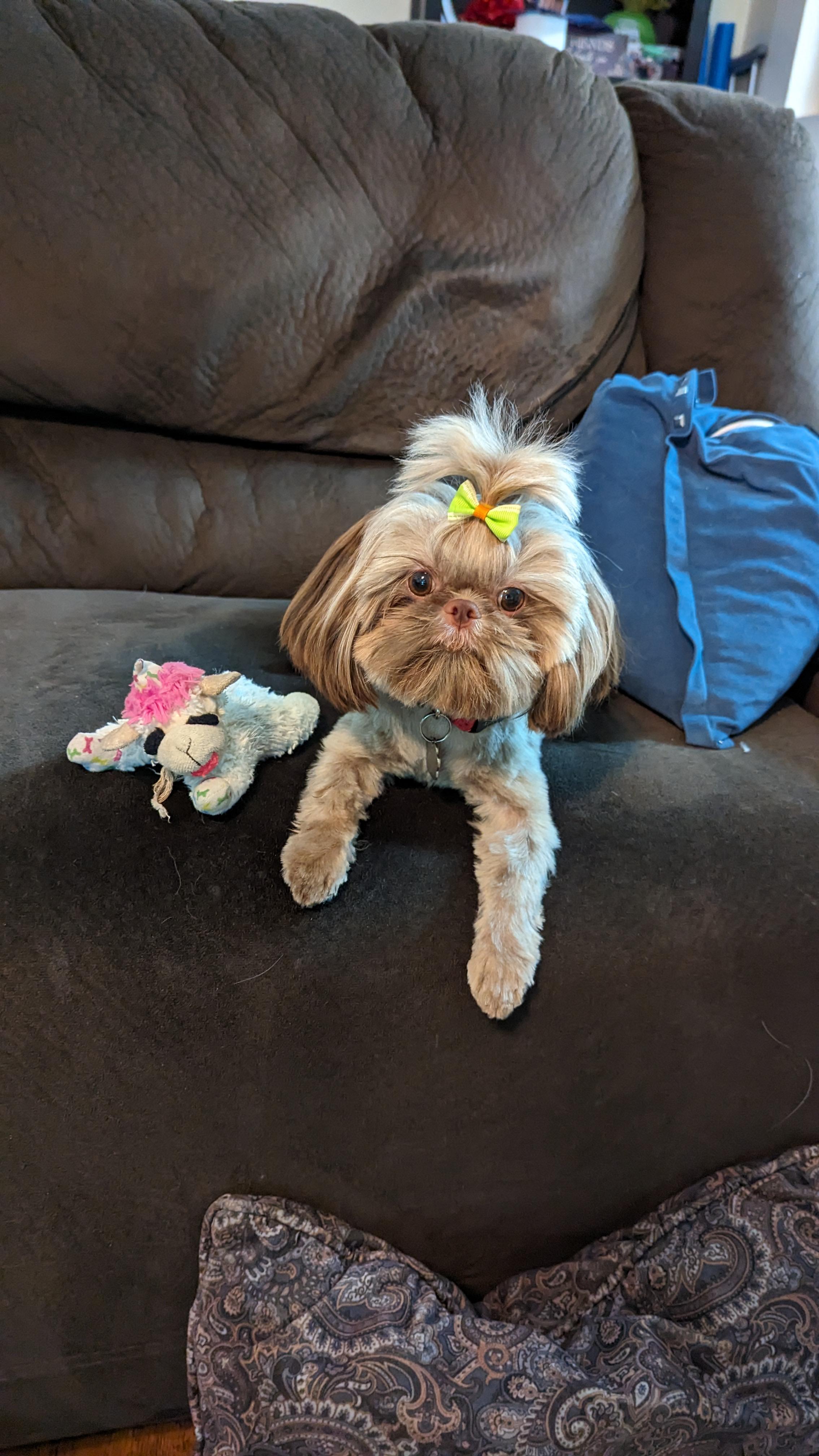 Chewy is a male Shih Tzu. Carefully selected as a great representative of his breed, Holly decided to make him part of their program. Holly has passed Good Dog’s screening process, which involved a review of their breeding practices, environment, and the mental and physical health of their dogs.
