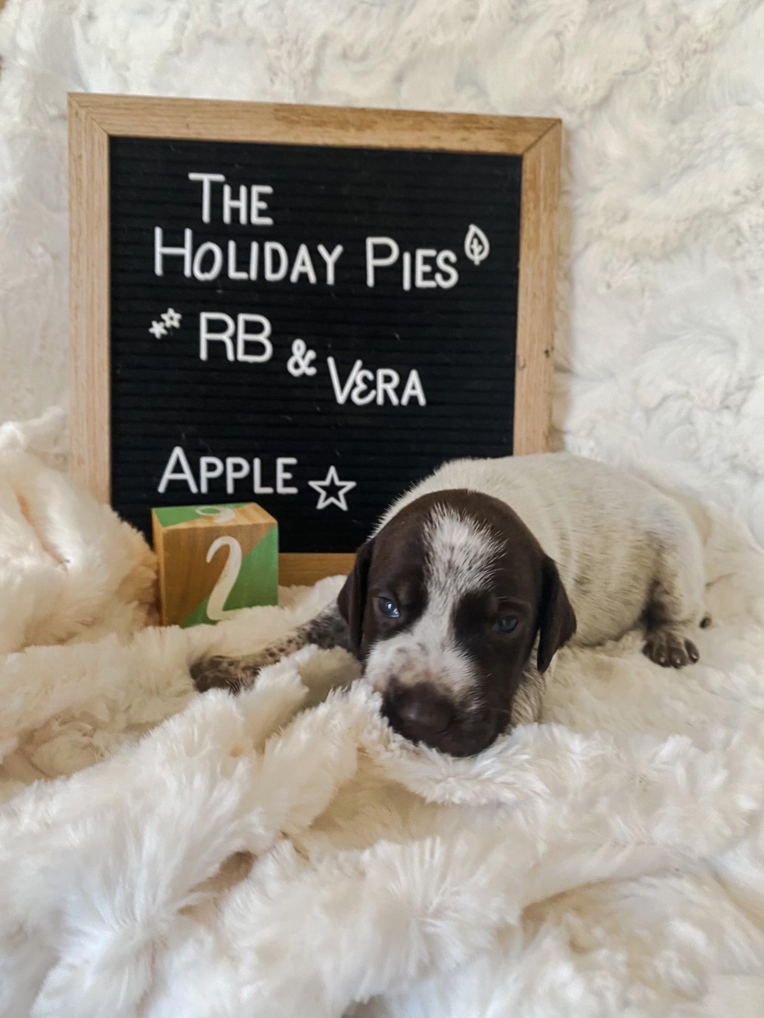 Vera is a female German Shorthaired Pointer over 6 years old. Carefully selected as a great representative of her breed, Chantel decided to make her part of their program. Chantel has passed Good Dog’s screening process, which involved a review of their breeding practices, environment, and the mental and physical health of their dogs.