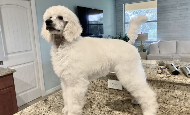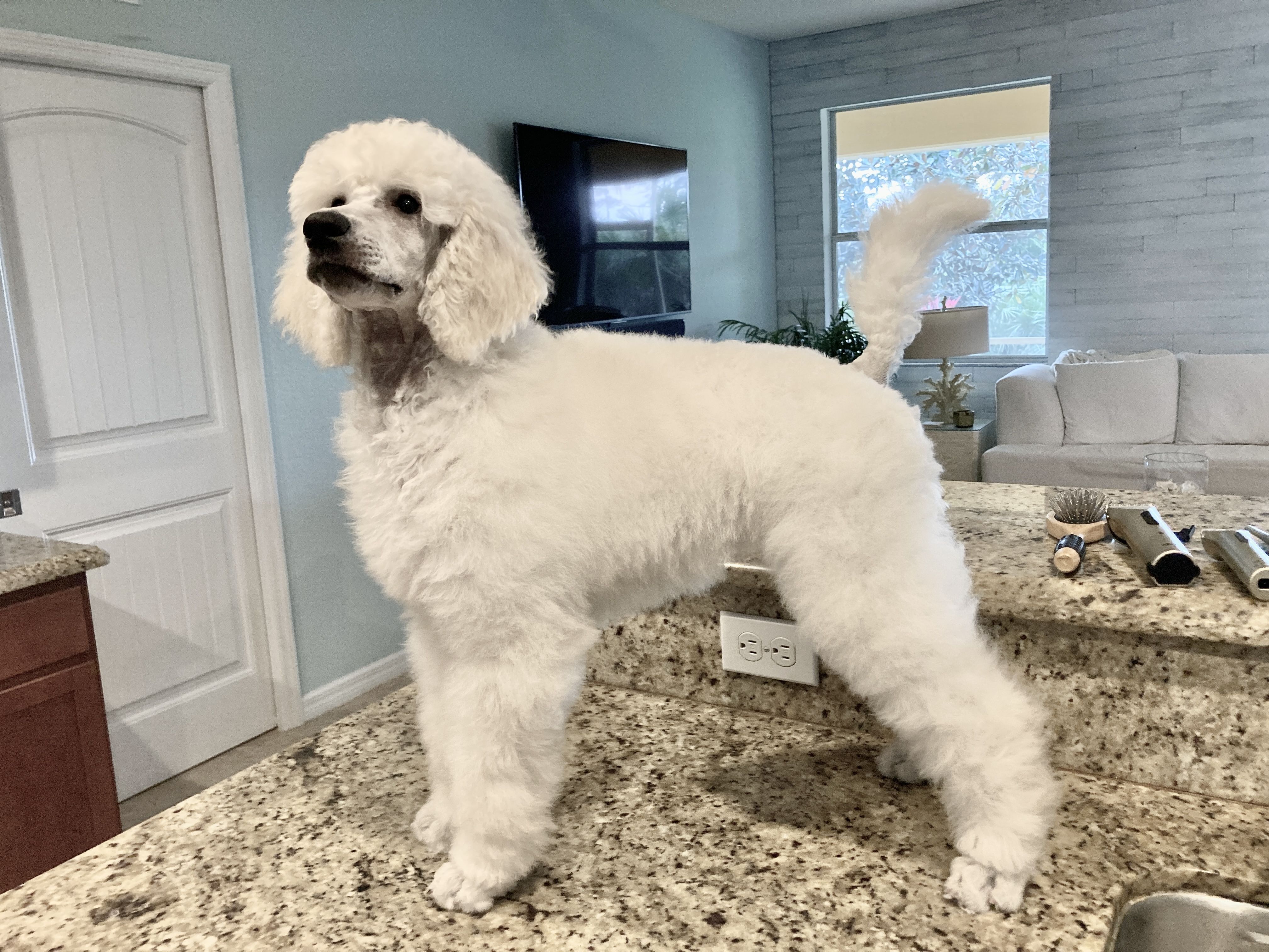 Asher is a male Poodle. Carefully selected as a great representative of his breed, Audra decided to make him part of their program. Audra has passed Good Dog’s screening process, which involved a review of their breeding practices, environment, and the mental and physical health of their dogs.