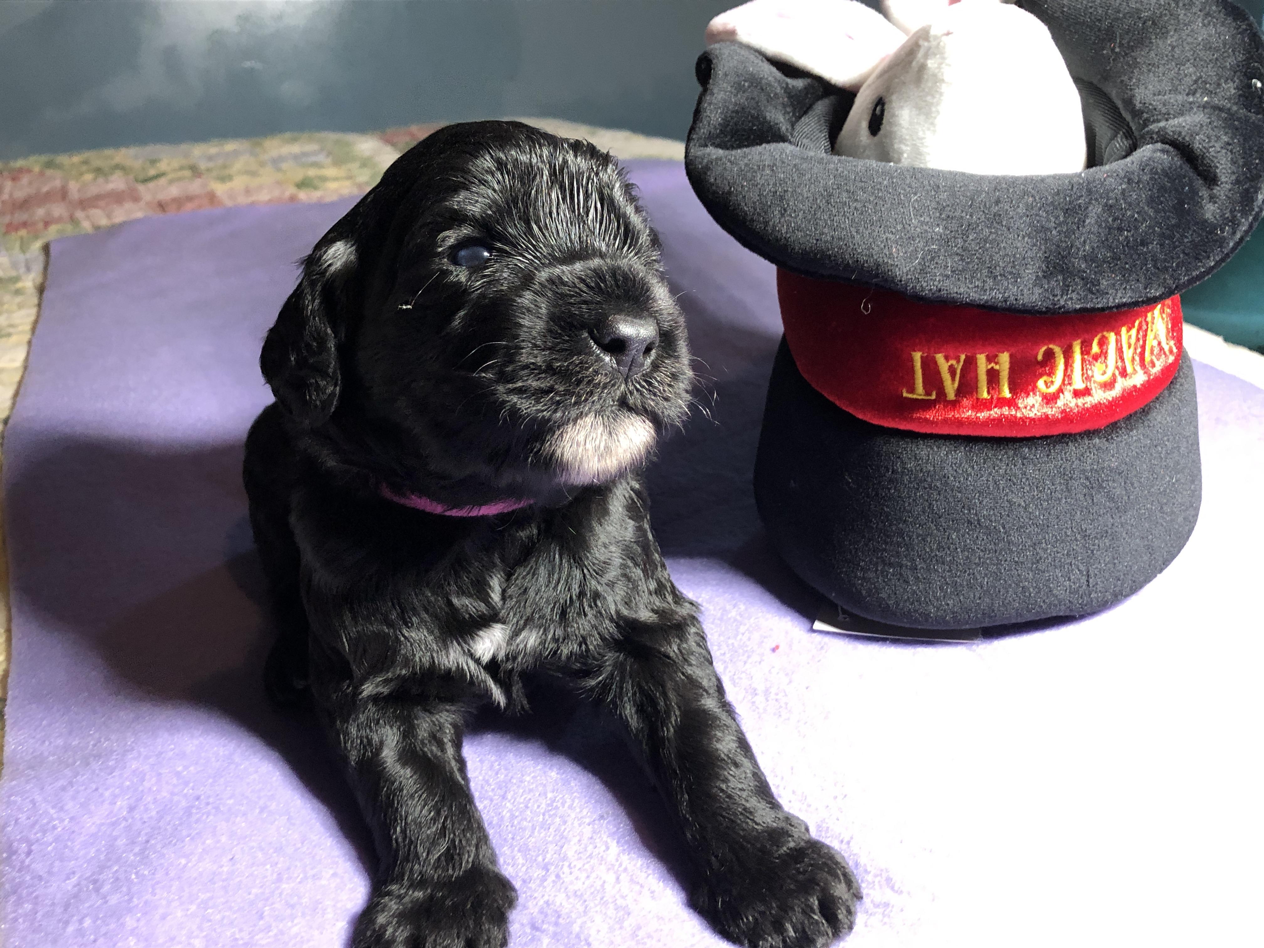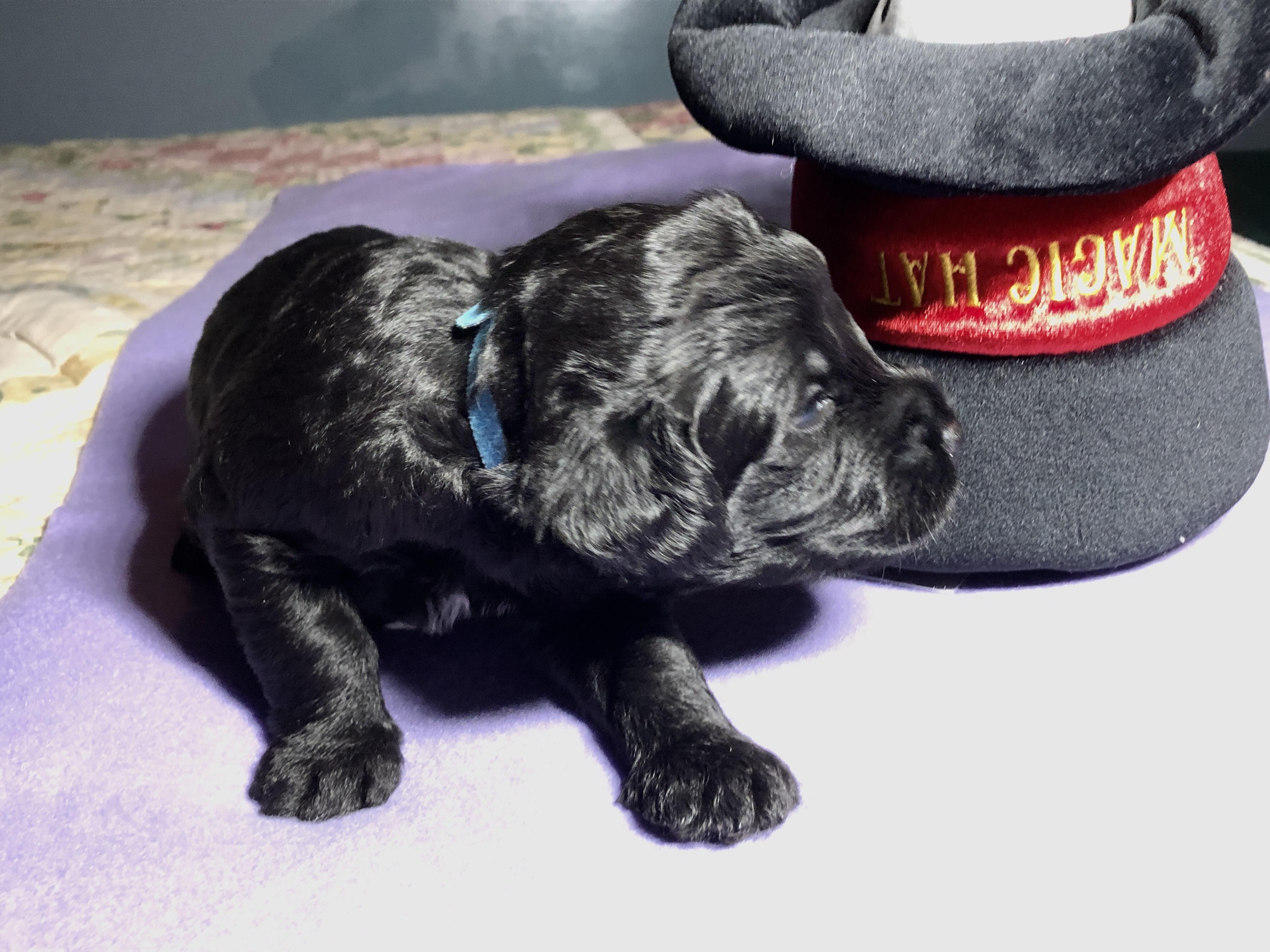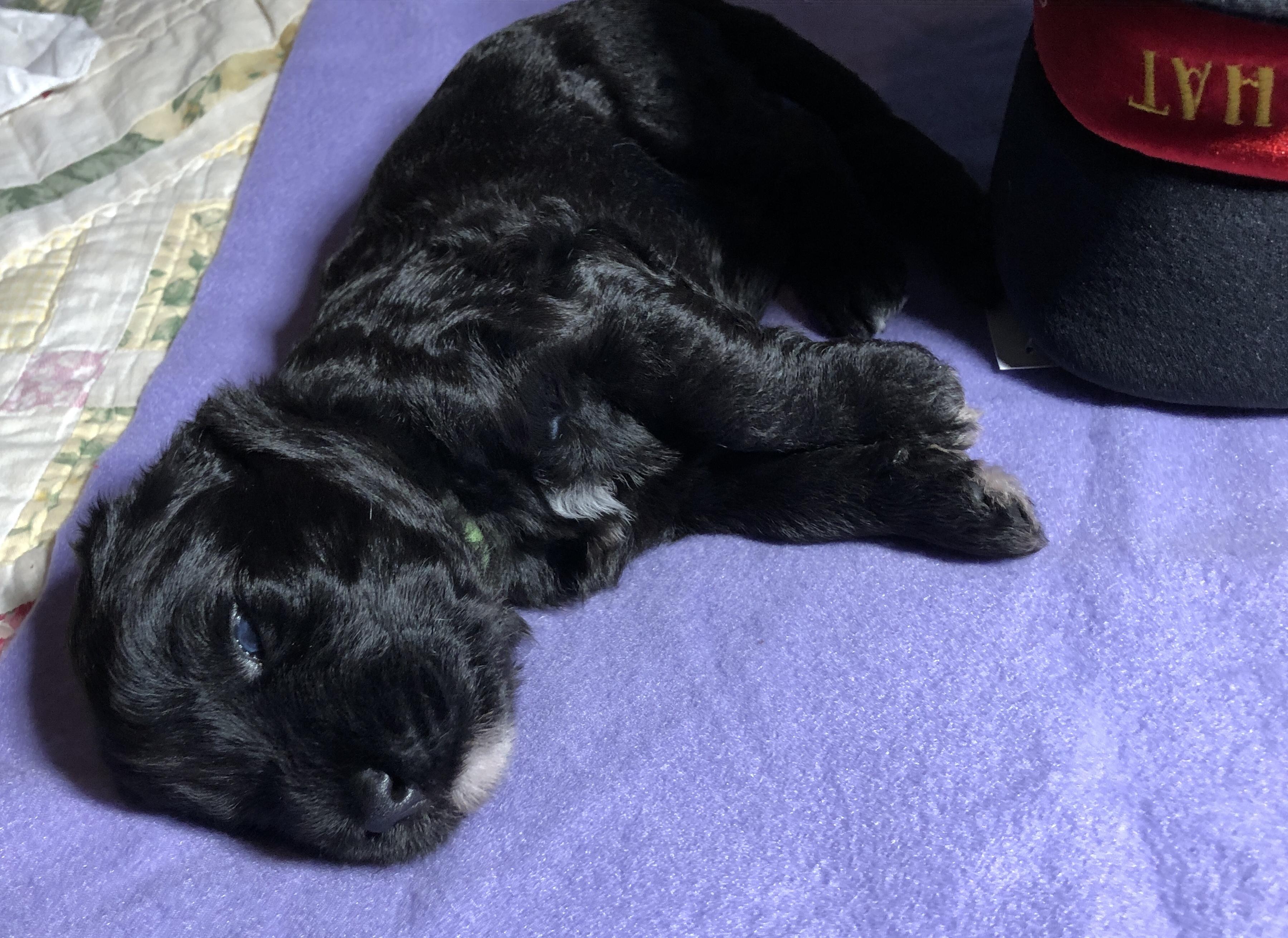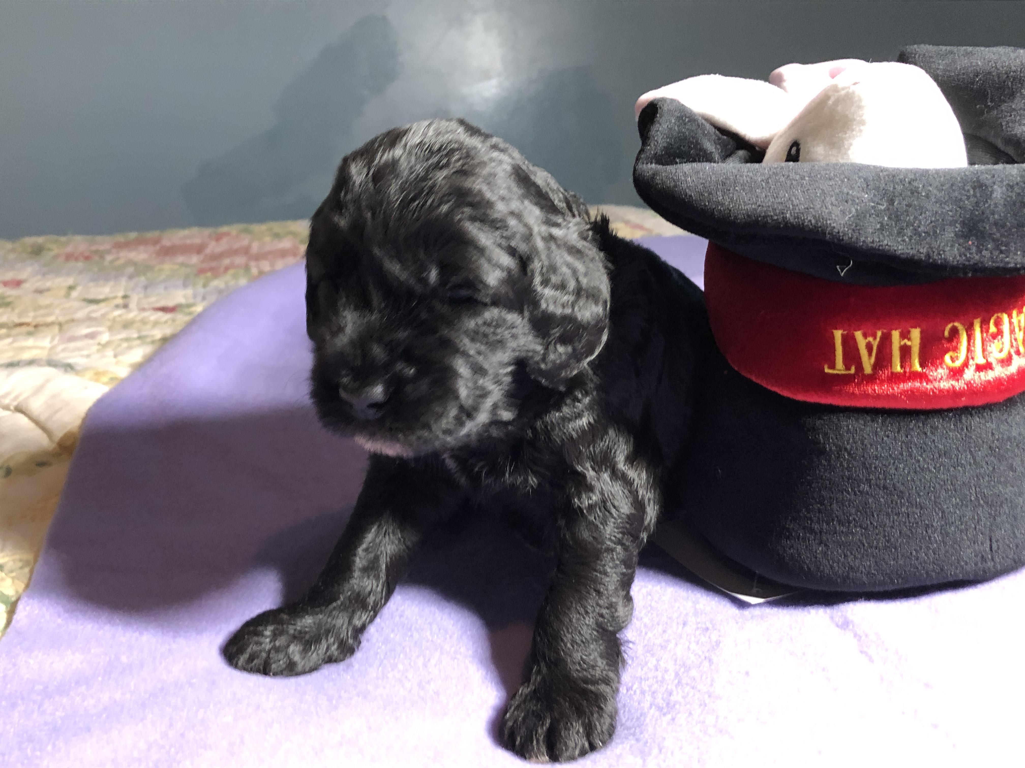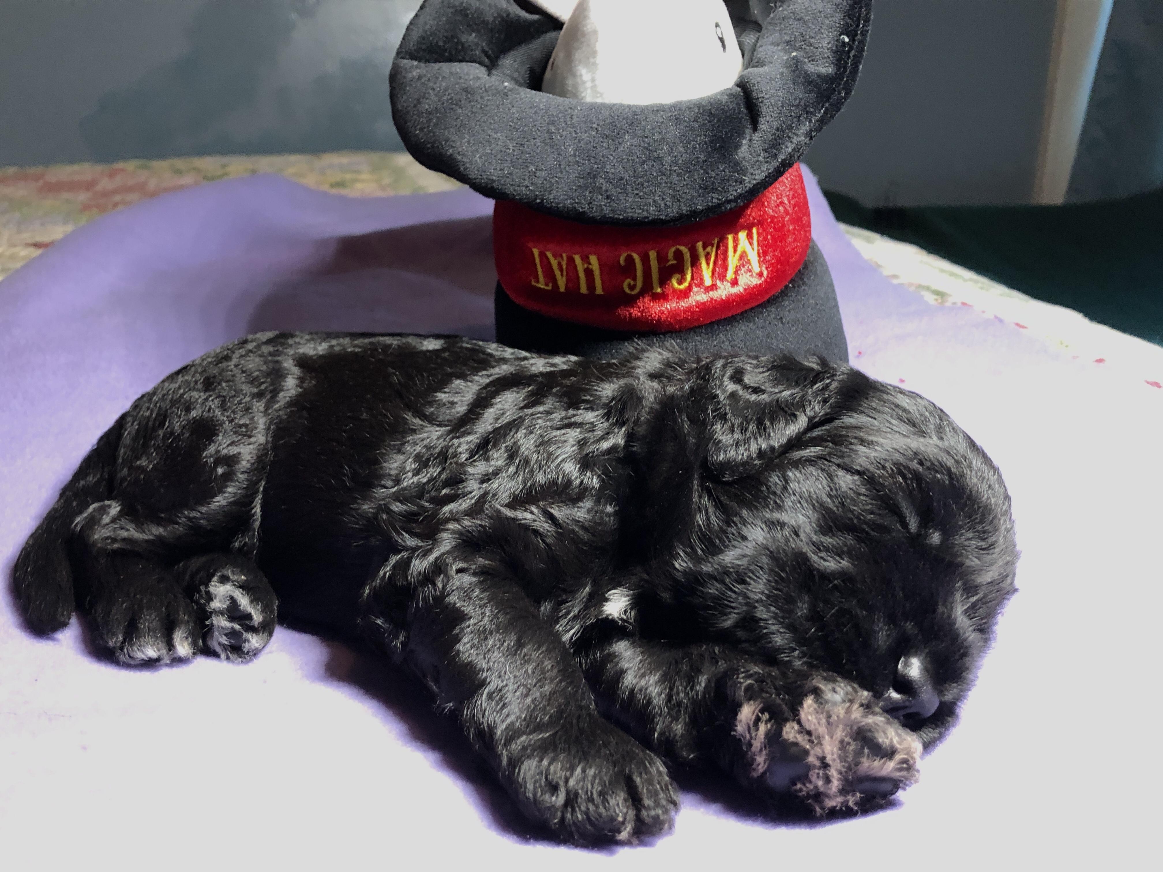 Our puppies include black and white and black. Colors will vary depending on the parent dogs.