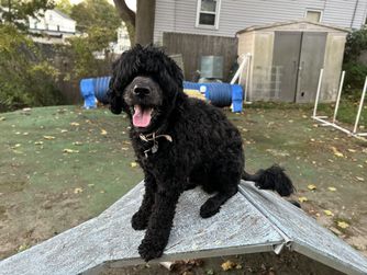 I'm Kari L., the breeder behind Topsail PWDs located in Blackstone, MA. We are a small hobby kennel that may breed once a year or not at all. We are interested in producing a line that is clear of as many health problems as possible and that produces great temperaments with work ethics and great structure. Portuguese Water Dogs are wonderful animals, full of exuberance, fiercely loyal and loving to family, and very intelligent. They can be good with older children, and can happily chill on your feet or, better yet, curled up on your couch or lap. However, these dogs are not a perfect fit for everyone and we require that potential owners meet our dogs to assess the fit of the breed and our line with the applicant's entire family. NOTE: despite people thinking they are hypoallergenic, no dog breed is -- they just shed less hair. But people can be allergic to their saliva and the stuff they bring in on their coat. Go to our link (below) to find out more information about our breeding program and to fill out an application.