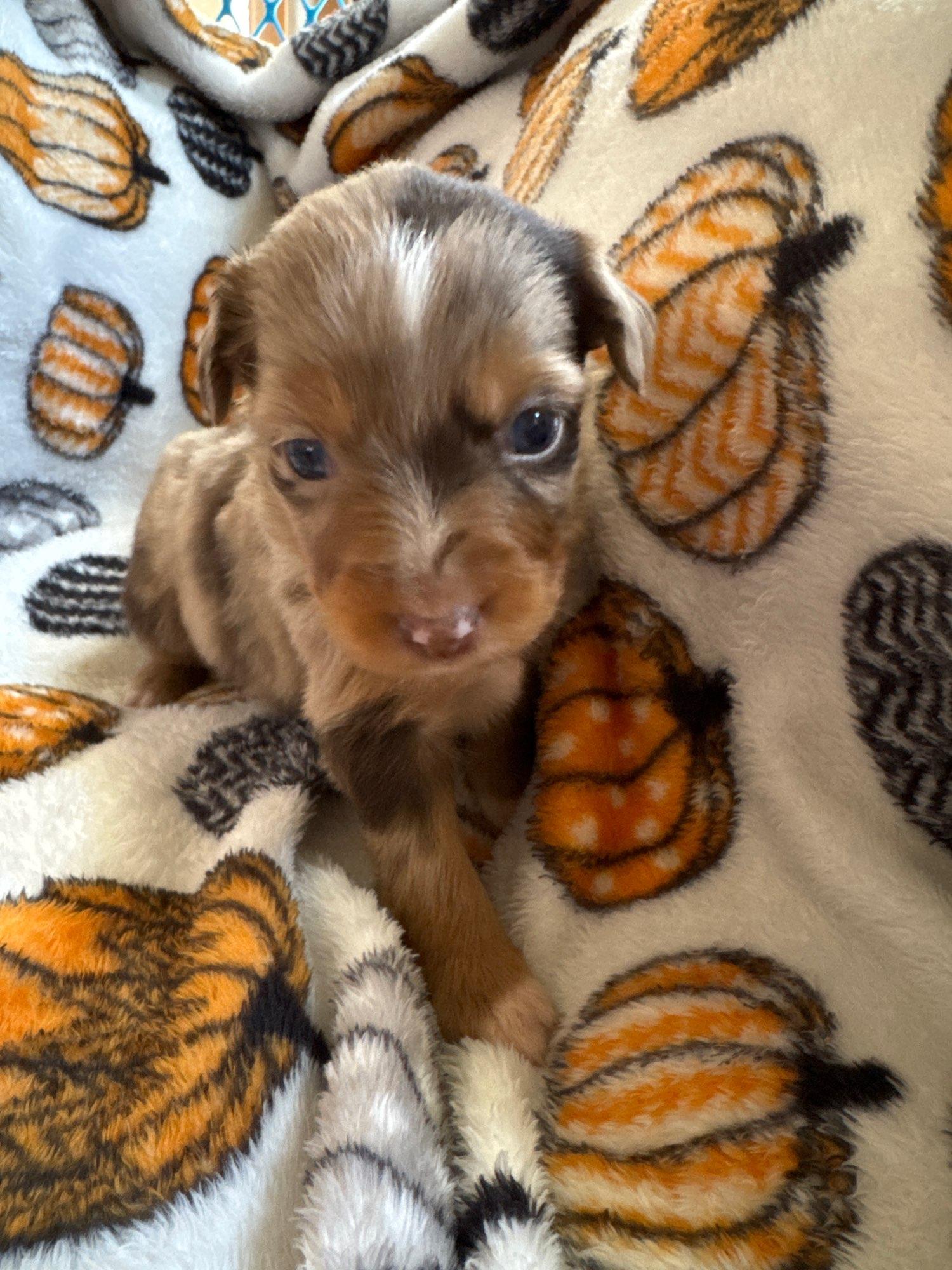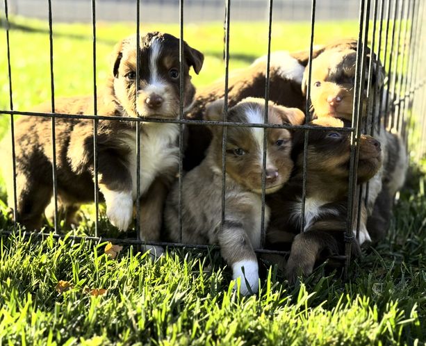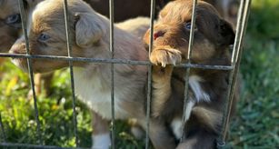 Our puppies include red tri and red merle. Colors will vary depending on the parent dogs.