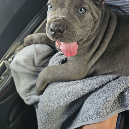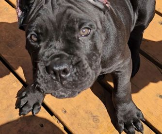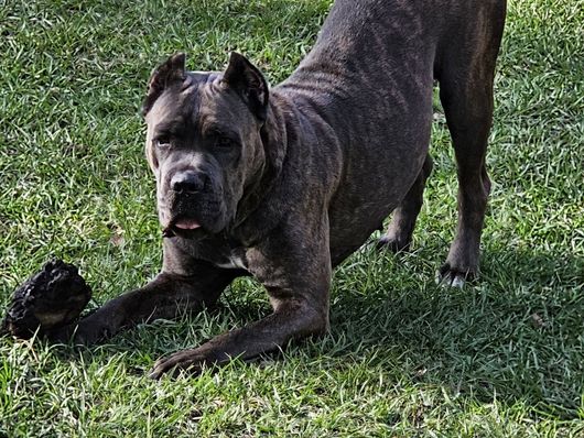 Lil Bit is a female Cane Corso about 4 years old. Carefully selected as a great representative of her breed, Bobbie decided to make her part of their program. Bobbie has passed Good Dog’s screening process, which involved a review of their breeding practices, environment, and the mental and physical health of their dogs.