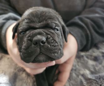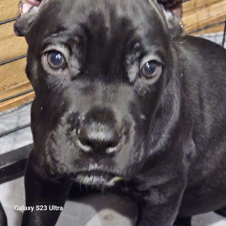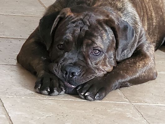 Cinnamon is a female Cane Corso. Carefully selected as a great representative of her breed, Bobbie decided to make her part of their program. Bobbie has passed Good Dog’s screening process, which involved a review of their breeding practices, environment, and the mental and physical health of their dogs.