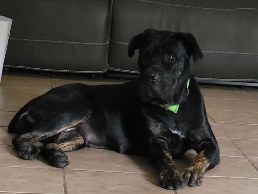Cajun is a male Cane Corso. Carefully selected as a great representative of his breed, Bobbie decided to make him part of their program. Bobbie has passed Good Dog’s screening process, which involved a review of their breeding practices, environment, and the mental and physical health of their dogs.