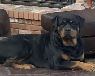 Booker is a male Rottweiler. Carefully selected as a great representative of his breed, Kathy decided to make him part of their program. Kathy has passed Good Dog’s screening process, which involved a review of their breeding practices, environment, and the mental and physical health of their dogs.