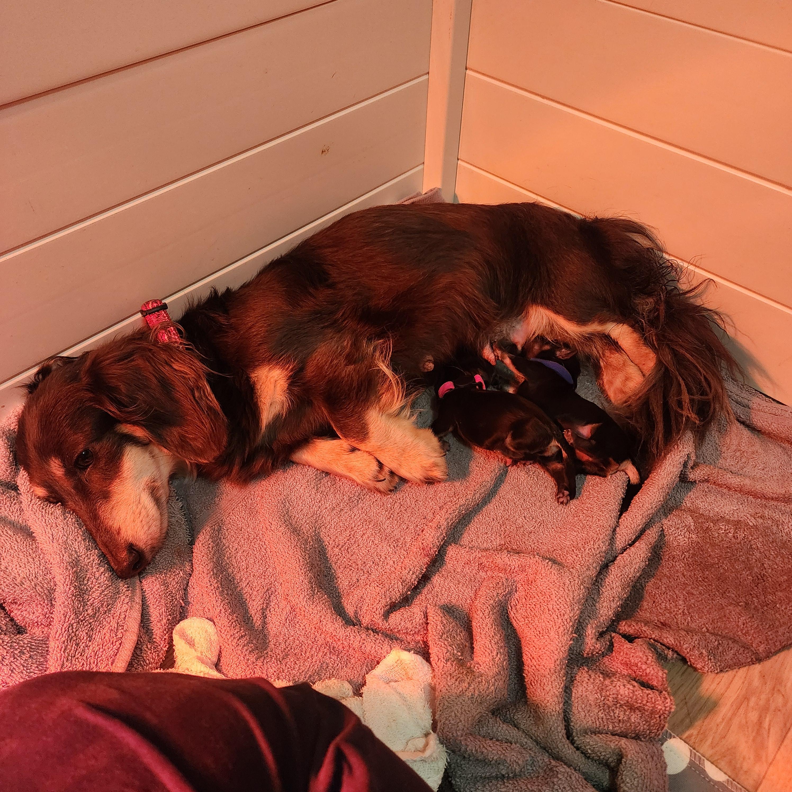 Our Dachshund puppies have longhaired coats. Coat types may vary depending on the parent dogs.