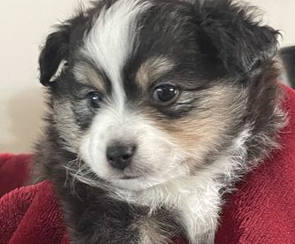 Meeko is a female Toy Australian Shepherd. Carefully selected as a great representative of her breed, Chandra decided to make her part of their program. Chandra has passed Good Dog’s screening process, which involved a review of their breeding practices, environment, and the mental and physical health of their dogs.