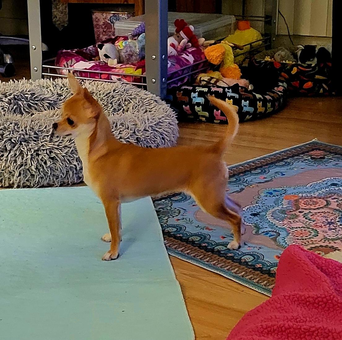 Daisy is a female Chihuahua. Carefully selected as a great representative of her breed, Debbie decided to make her part of their program. Debbie has passed Good Dog’s screening process, which involved a review of their breeding practices, environment, and the mental and physical health of their dogs.