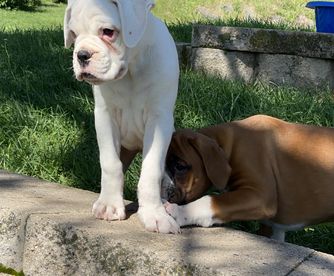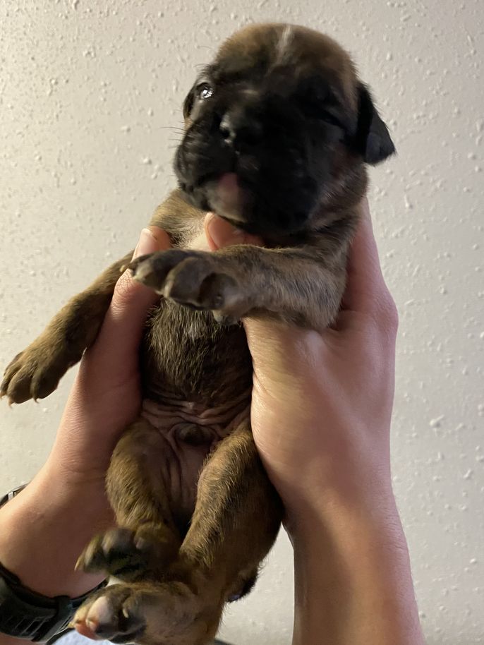 Our puppies include fawn and brindle. Colors will vary depending on the parent dogs.