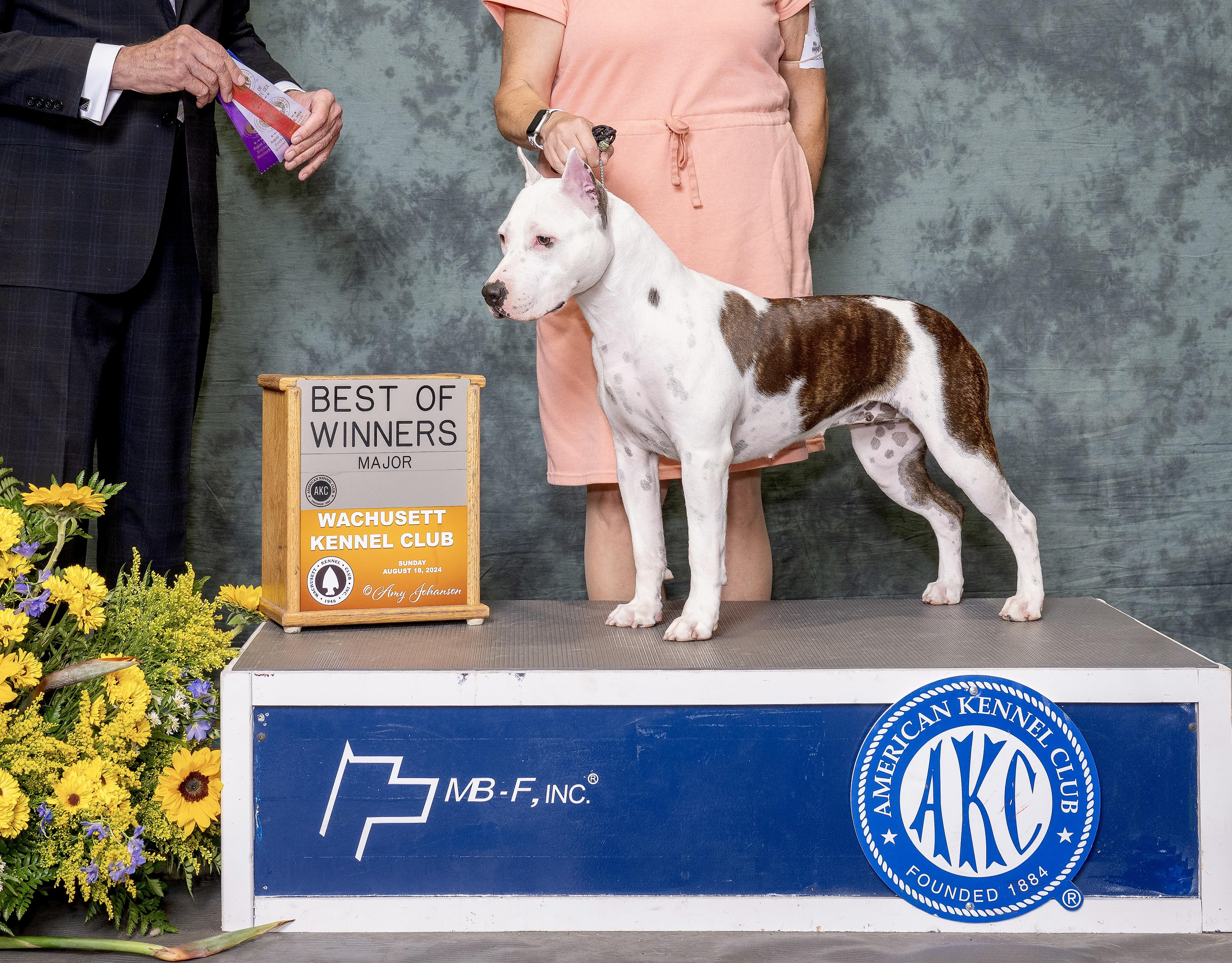 I'm Monique B., the breeder behind Tradewind American Staffordshire Terriers located in New Bedford, MA. All our dogs are health tested and CHIC certified, along with temperament tests.