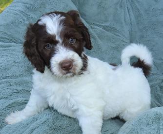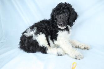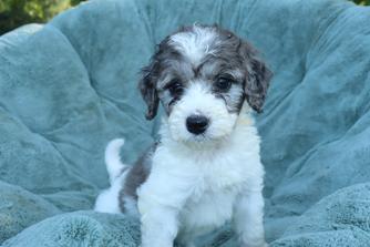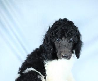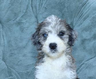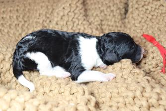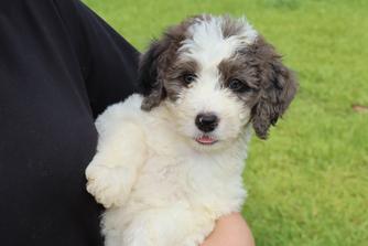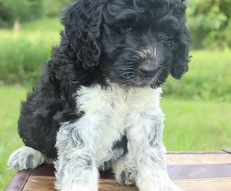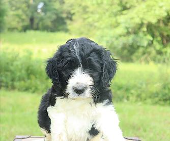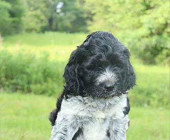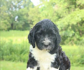 Our Springerdoodle puppies are black and white. Bernedoodle puppies include black and white and merle. Colors will vary depending on the parent dogs.