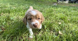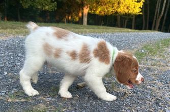 I'm Rebecca T., the breeder behind Trapezy Dogs - Brittany & Lowchen located in Martinsburg, WV. We nurture puppies in our family environment with whelping in our family room for the first 5 weeks & move to the annex/office for more space and outdoor play area. They run in our forest, have premium diets w/ farm fresh eggs & goat milk, potty training, leash & crate training, etc.