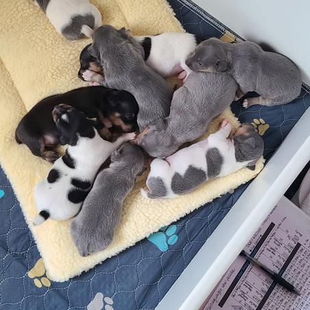 Working with Jenifer was a wonderful experience. Her genuine concern for the care of her puppies in their new home says a lot about the work she has done in caring for them. The pup we received from Jenifer, Newt, is beautiful, healthy, and intelligent. She was well-prepared with shots, records, future care schedules, and recommendations and was highly knowledgeable and transparent about the breed and what to expect. Working with her felt very professional, warm, and easy. She was highly responsive, welcomed, and did not mind answering questions. Screening and pick-up were smooth. I highly recommend Jenifer to anyone serious about welcoming an exceptionally well-bred Teddy Roosevelt Terrier into the family.