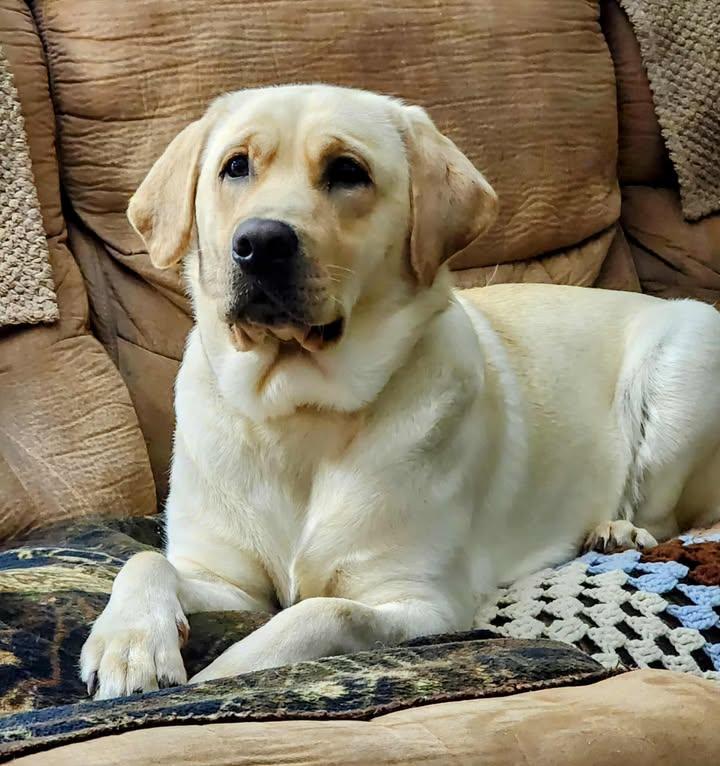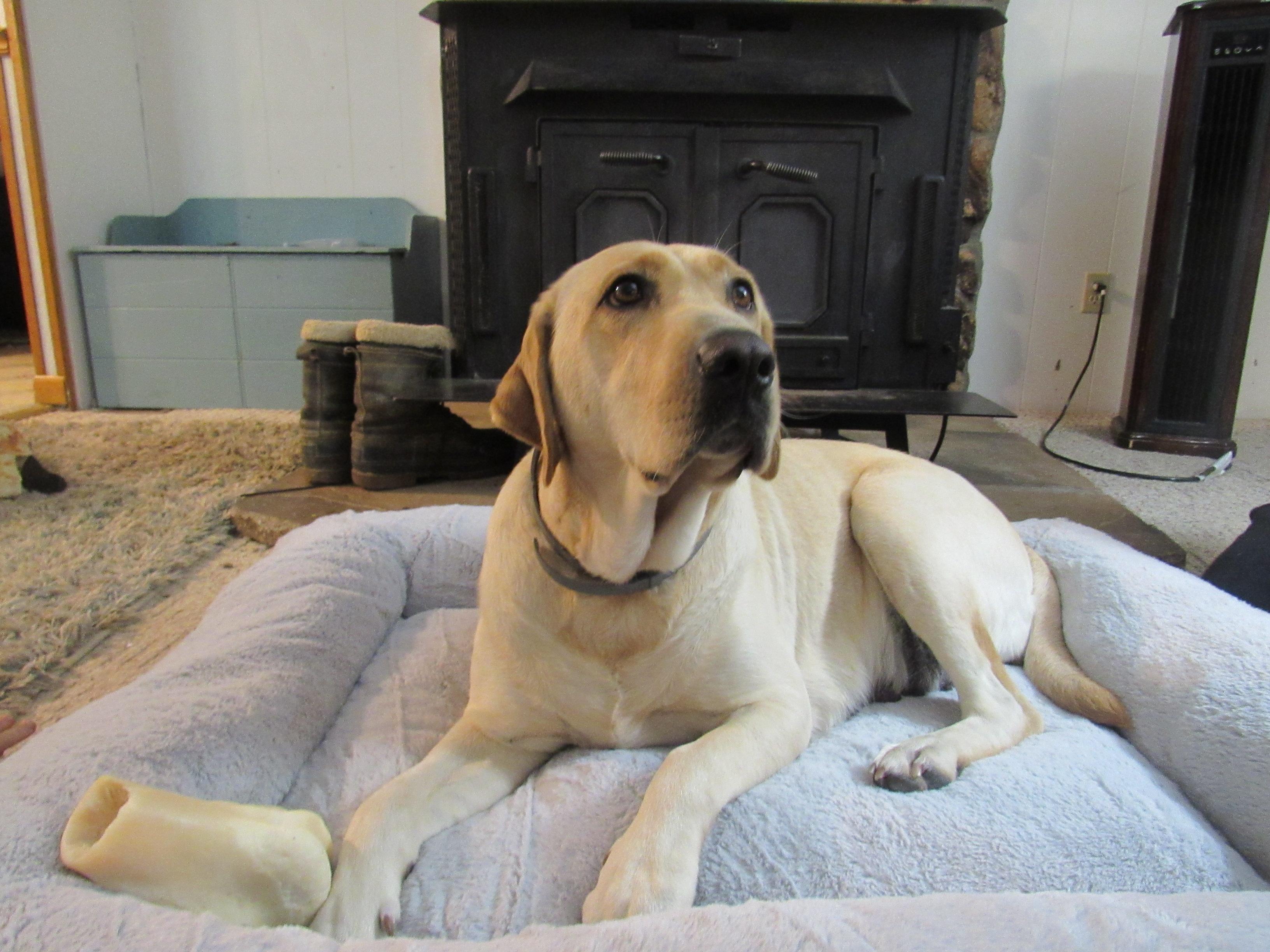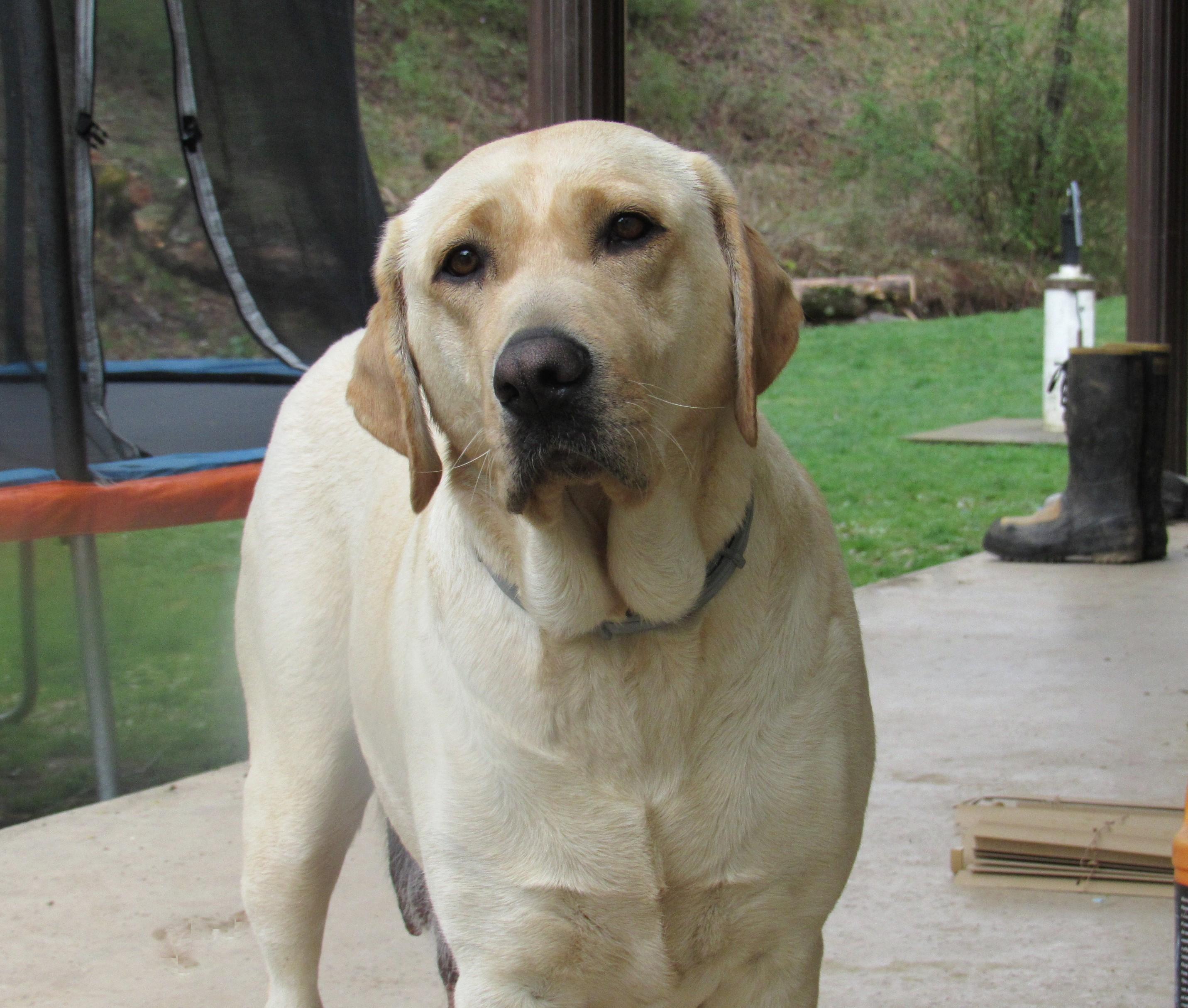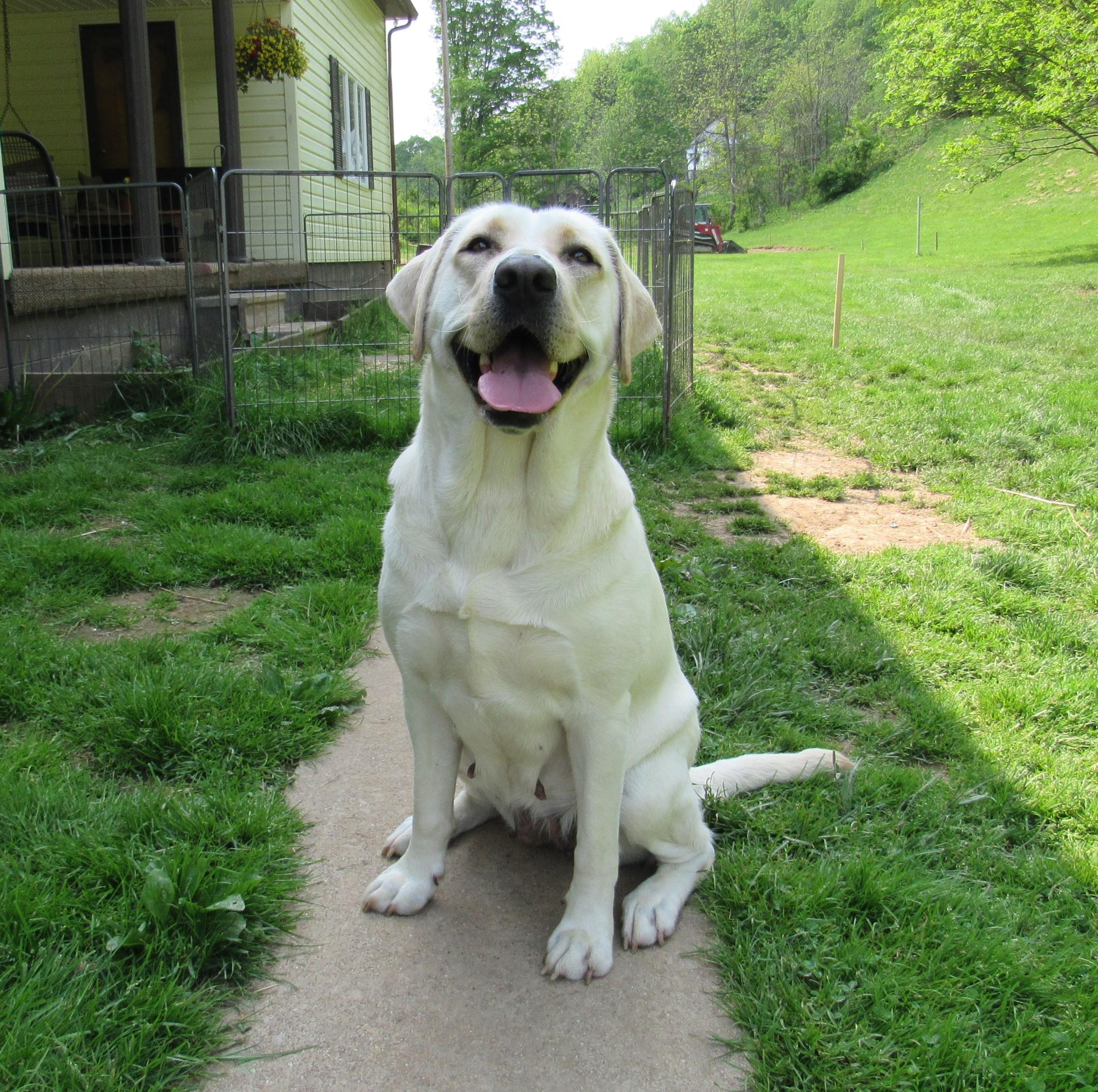 Lexi is a yellow (almost white) English lab who loves to be with us. If we are in the house, Lexi is beside us; if we are by the pool, Lexi will lay in the sun to be near us! Lexi is our heat loving dog and, in the winter, loves to lay in front of our wood burner or sit with us by a space heater.