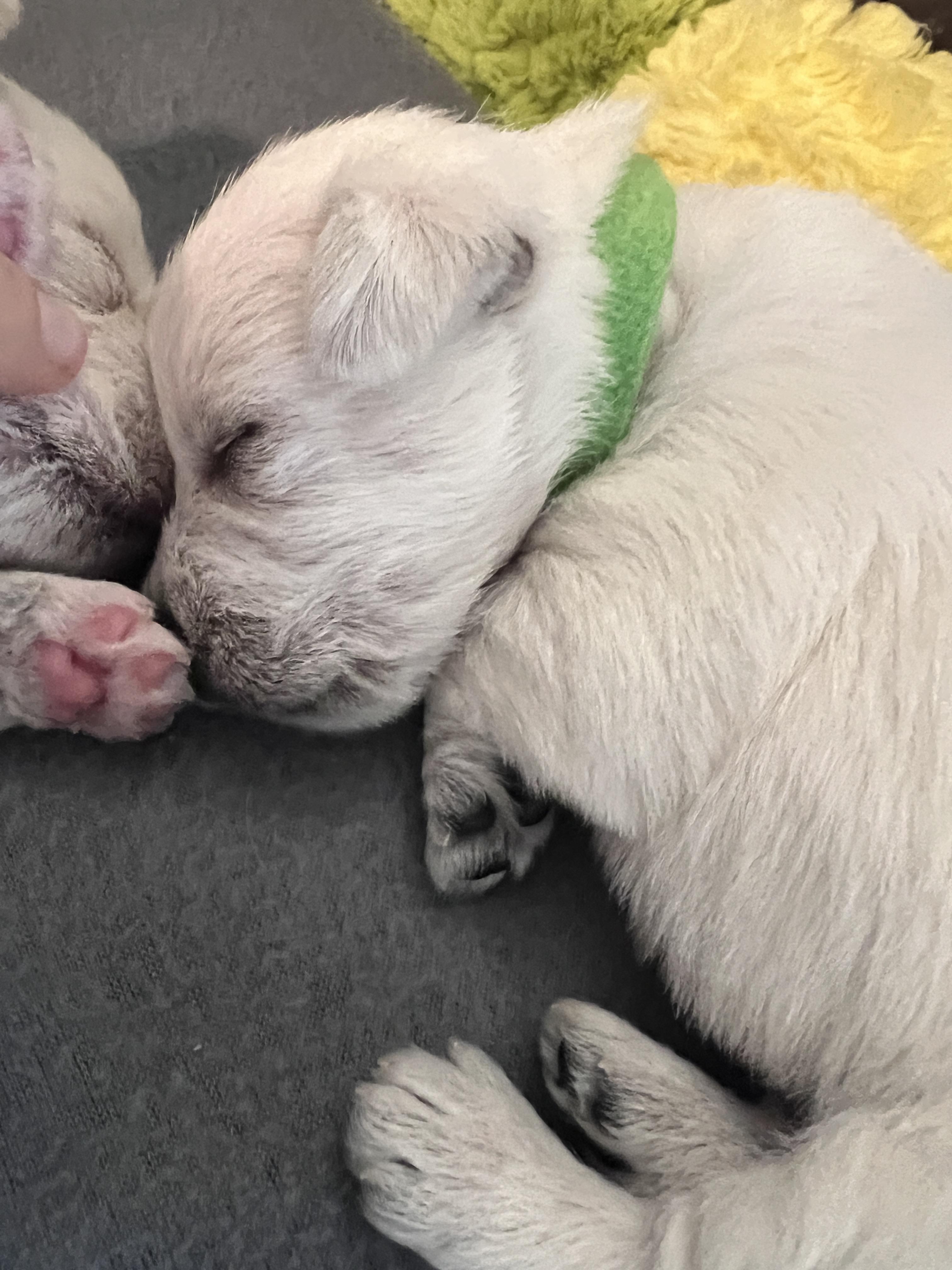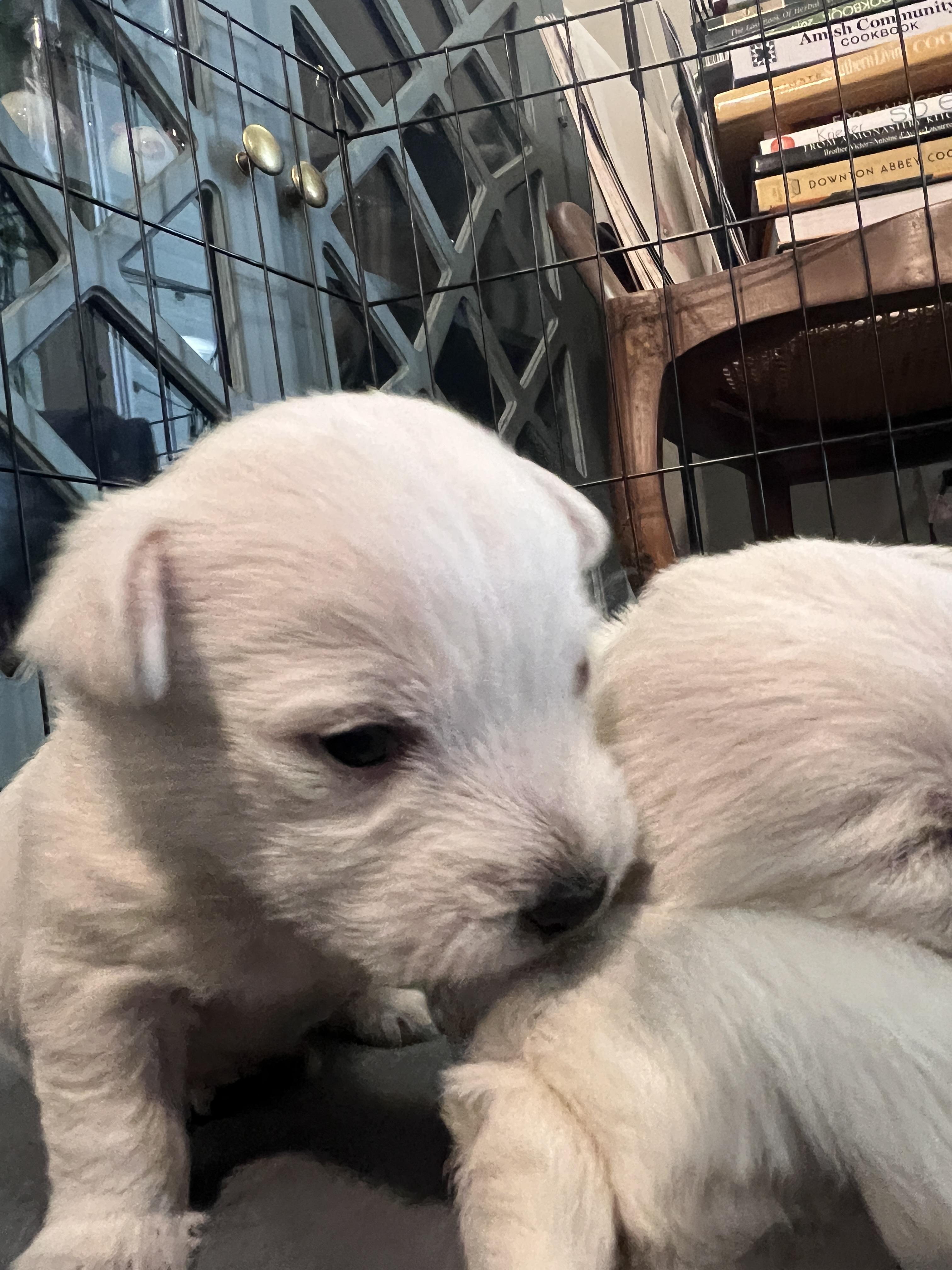 These pups get all the care and attention as my own pets get. They are extra loved. We did genetic testing on both parents and both tested negative for any genetic disease. These pups are not AKC registered but most buyers who are buying a Westie for a pet don’t mind, plus it saves them in the cost.
