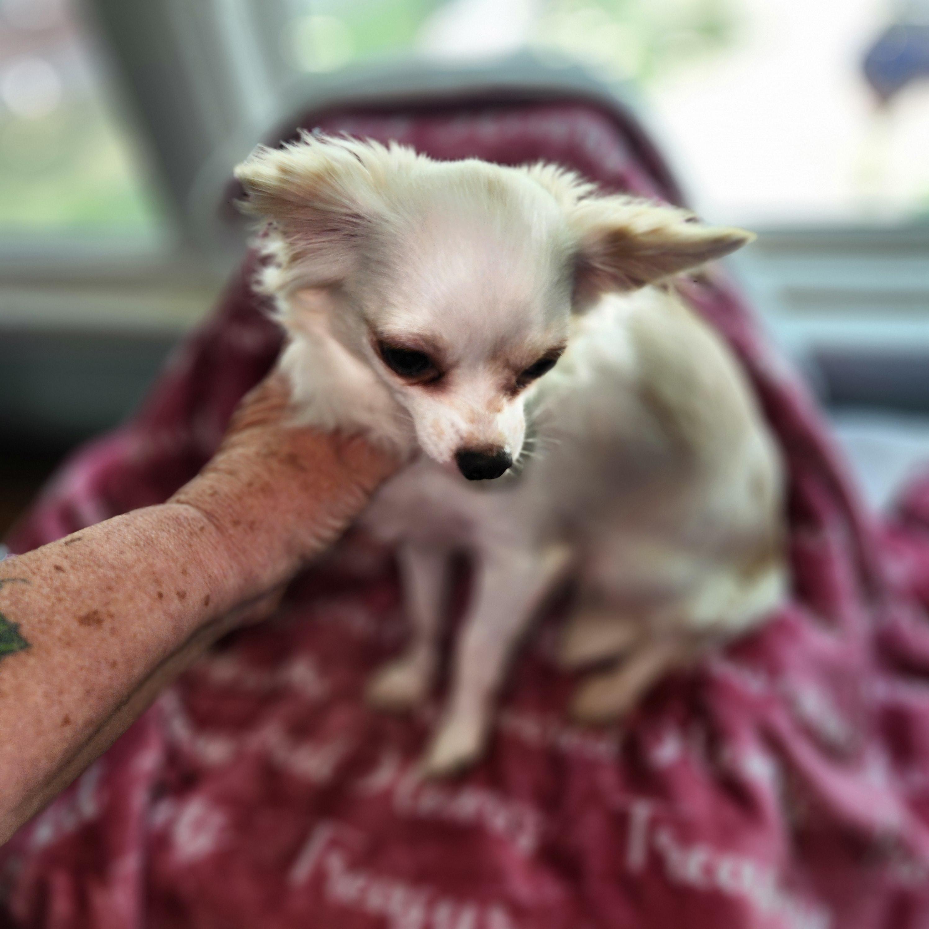 Pebbles is a female Chihuahua. Carefully selected as a great representative of her breed, Cynthia decided to make her part of their program. Cynthia has passed Good Dog’s screening process, which involved a review of their breeding practices, environment, and the mental and physical health of their dogs.