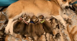 From day one puppies' feedings, health, and interactions are monitored and their progress recorded to ensure steady growth. Until they leave for their new home, they are given constant attention to help them develop their loving personalities and social skills. We love the Pembroke Welsh Corgi breed.