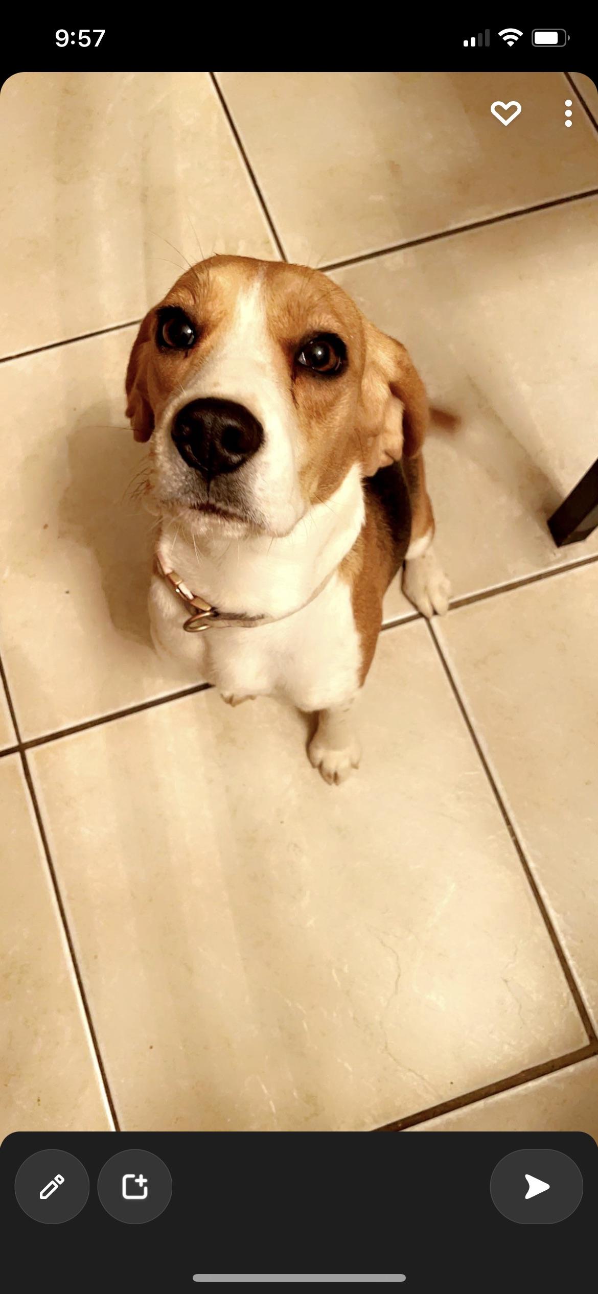 Bailey is a very smart , gentle and sweet dog . She loves people and get along great with everyone . She loves to cuddle and play with other dogs . She has a great temperament. Beagle are such great companion animals .