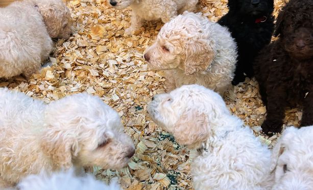Our puppies include apricot, black, blue, brown, and cream. Colors will vary depending on the parent dogs.