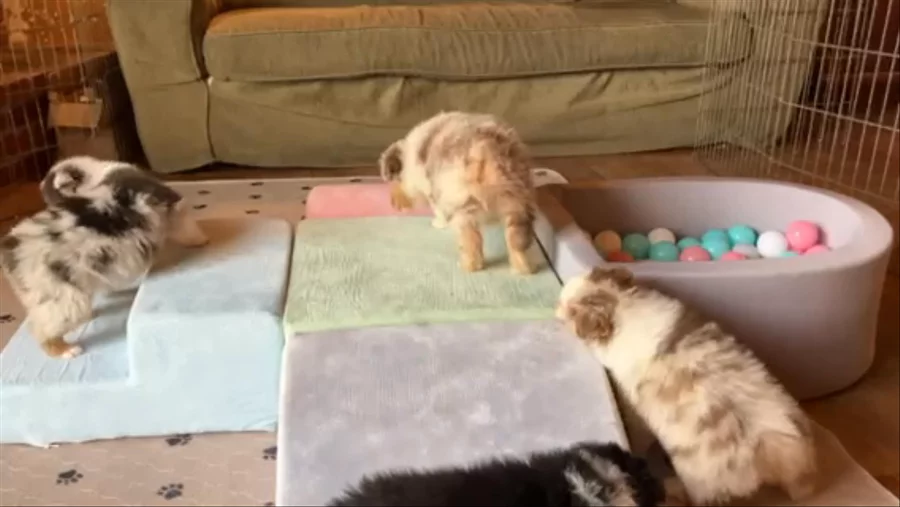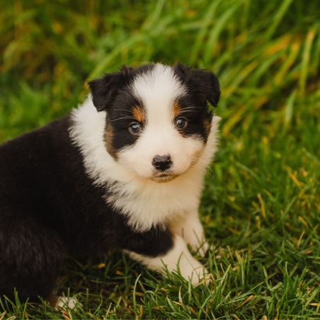 Our puppies include black, red merle, blue merle, and red. Colors will vary depending on the parent dogs.