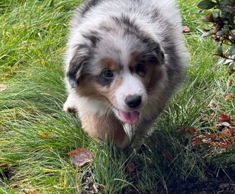 Our puppies include blue merle, black tri, red tri, and red merle. Colors will vary depending on the parent dogs.