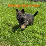 The pups are getting big and have graduated to the outdoor puppy pen for play time learning how to potty outside, learning different footing, using a doggie door seeing that there is a bigger world then the welping box. They are getting more attentive and will come running to you when you clap your hands.