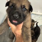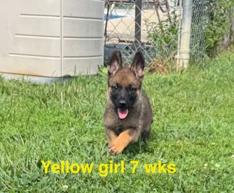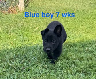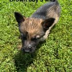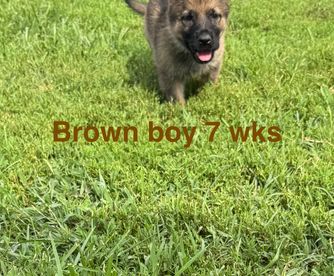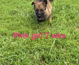 Wow we are up to 7 weeks. Their ears are going up and down as they grown this will happen for the next 2 months or less. They are getting very good and using the bathroom in the grass and getting very playful and enjoying human interaction a lot as they turn into land sharks as we call them.