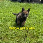 These babies at 5 weeks old have mastered the doggie door, eating puppy food and coming to you for the food or just by clapping your hands. They are growing fast.