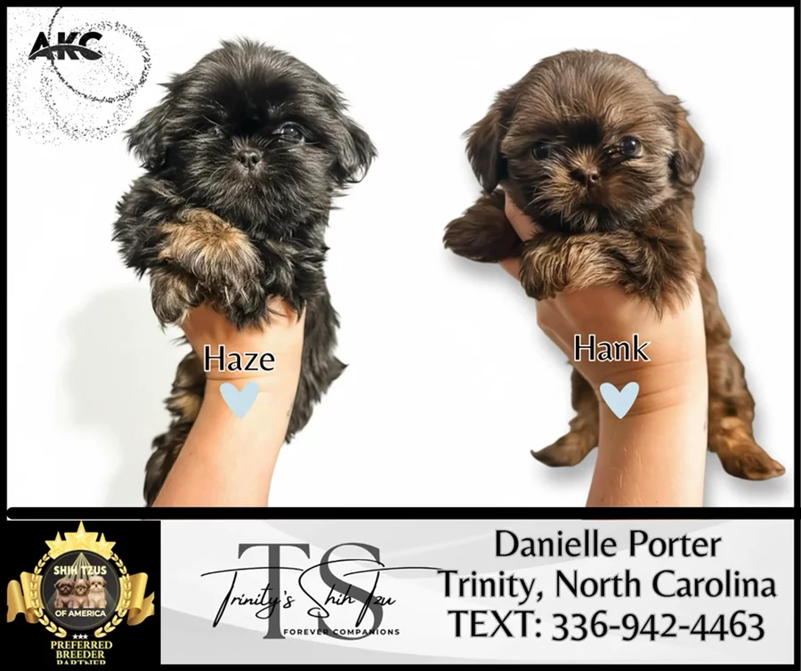 I'm Danielle P., the breeder behind Trinity Shih Tzu located in Trinity, NC. At Trinity Shih Tzu, we raise healthy, happy puppies in our home with love and care. Each puppy is well-socialized, vet-checked, microchipped, and started on potty training. We focus on health, temperament, and unique colors, helping families find their perfect lifelong companion.