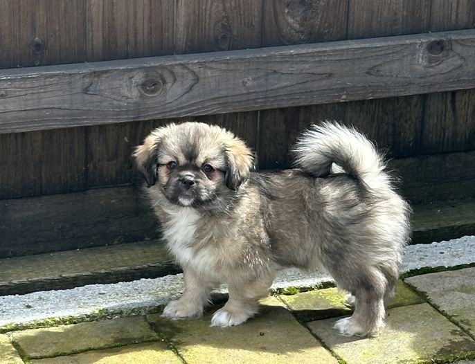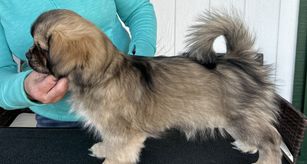 I'm Trish S., the breeder behind Trinity Tibetan Spaniels located in Central Point, OR. I’ve been breeding and showing Tibetan Spaniels for over 15 years. They are raised in our home with our family. I am not a kennel. Our dogs are bred for health and temperament first and foremost! We show to prove the quality of our dogs. I have finished many champions and grand champions, and only those dogs are bred. All parents are PRA-3 health tested Patellas normal.