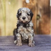 Aussiedoodle puppies include blue merle, red merle, black phantom, black and white, black tri-color, red phantom, and red tri-color. Goldendoodle puppies include cream, apricot, chocolate, black, phantom, merle, and parti. Colors will vary depending on the parent dogs.