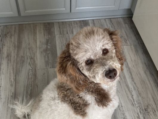 Coco is a female Poodle about 6 years old. Carefully selected as a great representative of her breed, Dedra decided to make her part of their program. Dedra has passed Good Dog’s screening process, which involved a review of their breeding practices, environment, and the mental and physical health of their dogs.