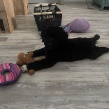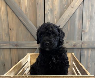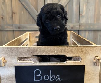 Our Bordoodle puppies are standard size. Goldendoodle puppies include miniature and medium sizes. Sizes will vary depending on the parent dogs.