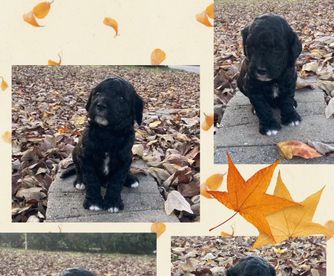 Our Bordoodle puppies are white and black. Goldendoodle puppies are parti. Colors will vary depending on the parent dogs.