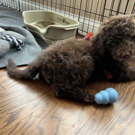 Very awesome people & puppies! Great communication through the process & so glad we got our mini chocolate boy from them. He’s done great going potty outside, getting used to his crate & leash and our extended family (three grandsons are loving coming to visit with him).