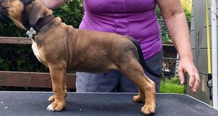 Penny is a female American Bully. Carefully selected as a great representative of her breed, Lisa decided to make her part of their program. Lisa has passed Good Dog’s screening process, which involved a review of their breeding practices, environment, and the mental and physical health of their dogs.