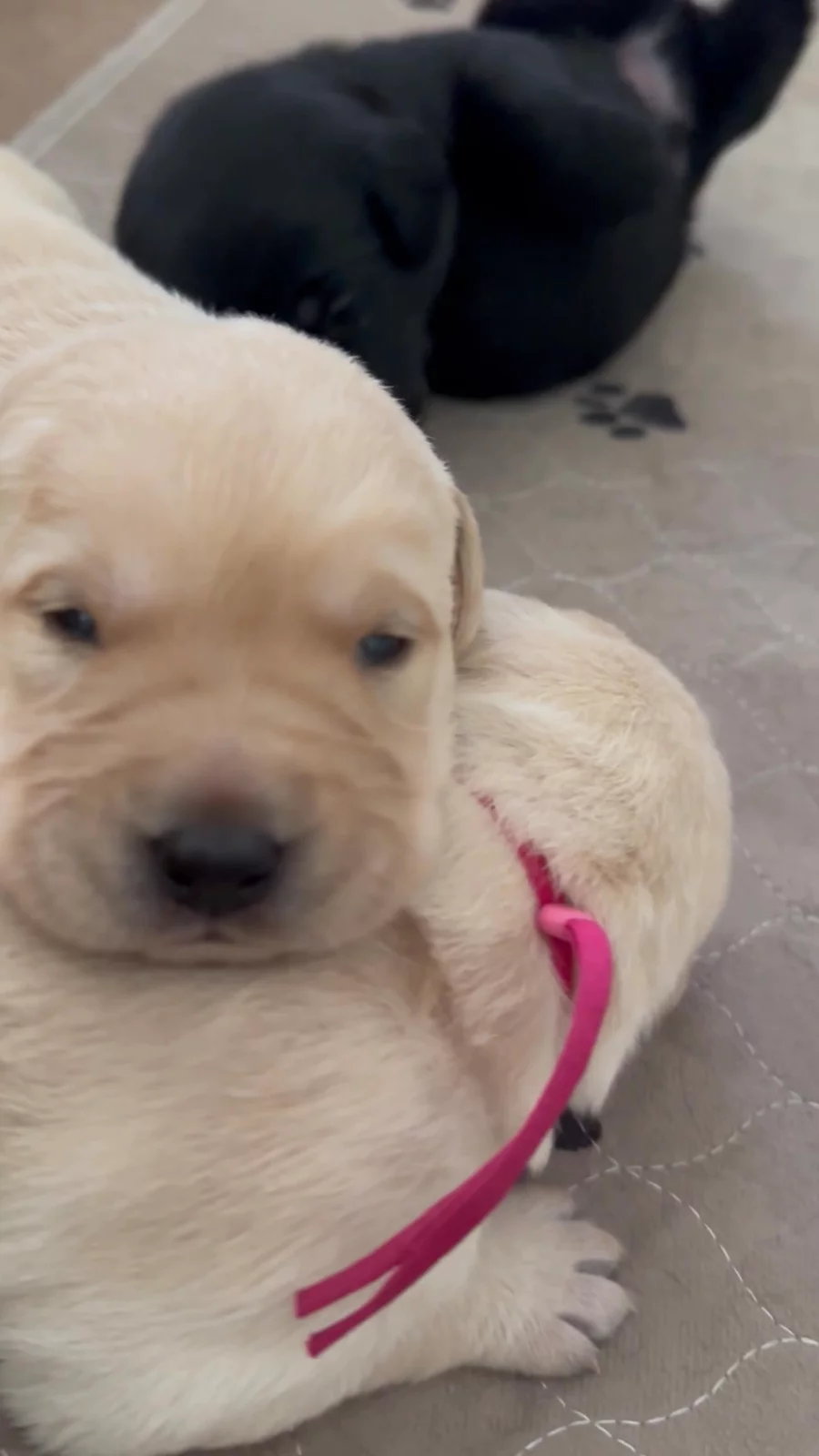 “This price includes puppies from health tested parents along with deworming, vet check with vaccinations, microchip and health guarantee. Puppies start on crate and potty training while in our home. Price applies to black and yellow. Deposit holds your pick of color/gender preference. I WILL refund a deposit until 1 week old. I want you to be happy to have our pup.”