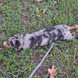I had been searching for a Mini Australian Shepherd for about 5–6 months, constantly checking listings, but often found that many breeders were unresponsive or more focused on making a quick sale than answering important questions. After months of searching, I finally found Leigh, and I’m so glad I did. From the very beginning, Leigh was kind, responsive, and patient. She took the time to answer all of my questions and even set up a phone call to discuss the breed, their traits, and the key responsibilities that come with owning a Mini Australian Shepherd. Her passion for raising her pups is clear, and it truly sets her apart. Leigh goes above and beyond by conducting health testing, exposing the puppies to different environments and experiences, and even creating detailed personality reports for each pup to help match them with the right family. This level of care made me feel confident that I was choosing the right breeder. On September 4th, I brought home my puppy, Bullet. Naturally, he was a little nervous at first, but he quickly adapted and recognized me as his owner. Thanks to Leigh’s efforts, Bullet already had a strong foundation he was familiar with crate training, potty training, and even knew basic commands like “sit.” This made training him on new commands much easier, and he continues to impress me with how smart and quick to learn he is. Overall, Leigh is a Top Class breeder who pours her heart and dedication into raising well prepared, happy, and healthy puppies. The entire process was smooth and stress free, and I couldn’t be happier with my experience. I highly recommend Leigh to anyone looking for a Mini Australian Shepherd. ⭐️